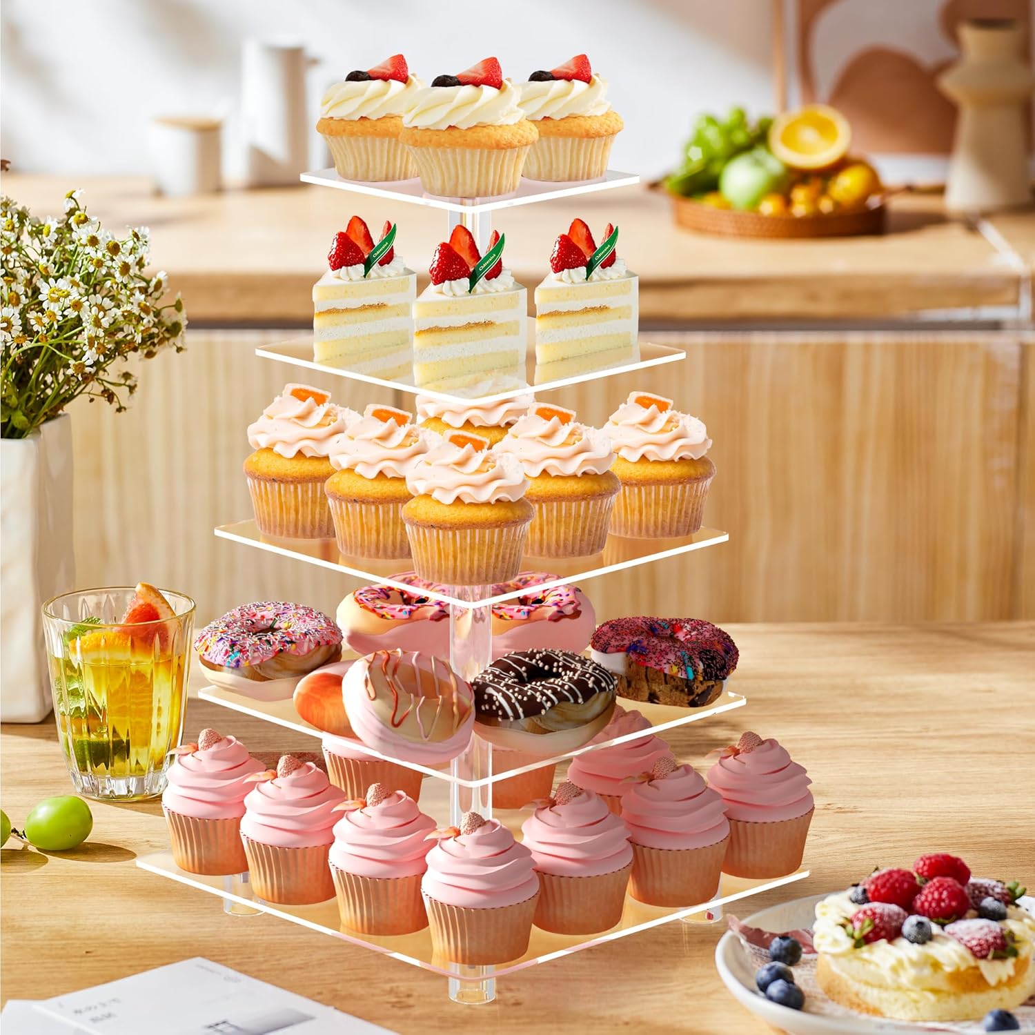 - 【Durable Acrylic】 This premium cake stand is built from top-tier acrylic, resistant to wear, and ideal for both family gatherings and large celebrations. A reliable, long-lasting cupcake holder option that effortlessly handles up to 53 cupcakes