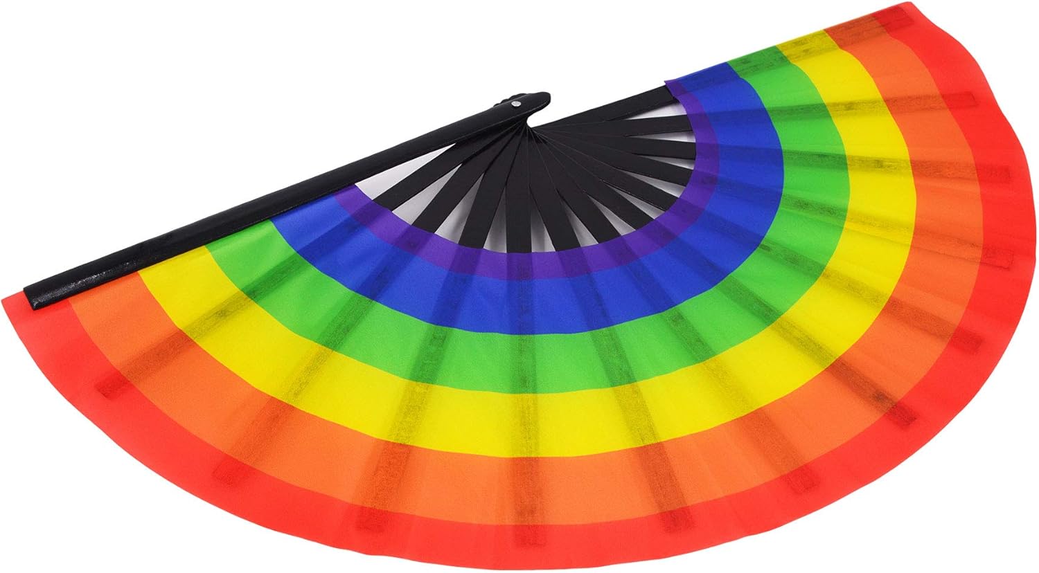 Amajiji Large Folding Hand Rave Fan Popping Fan for Line Dancing Clacking Fans for Boots On The Ground Dance,Party,Decoration,Festival (Rainbow)