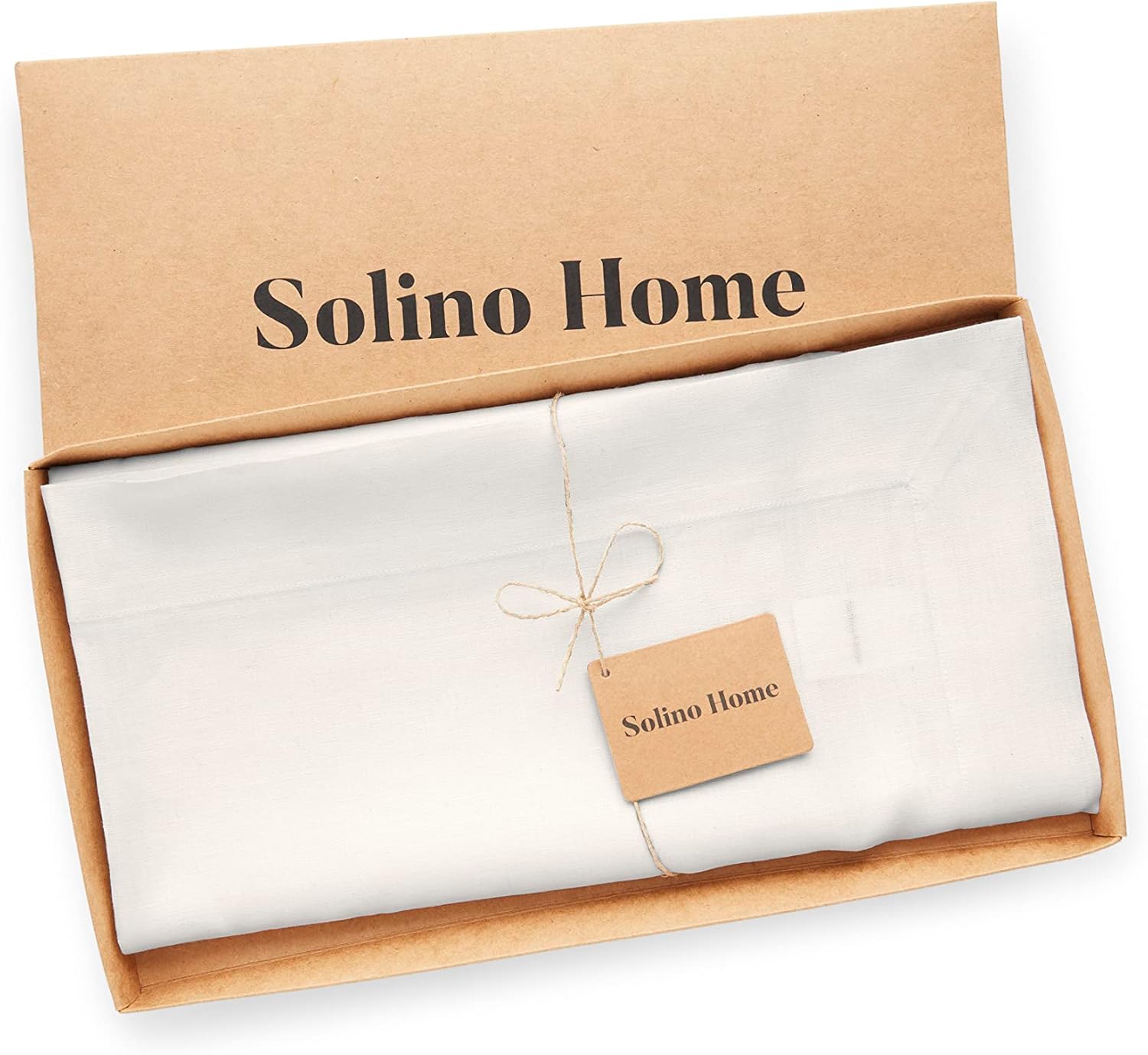 Solino Home Linen White Square Tablecloth 52 x 52 Inch - 100% Pure Linen Table Throw - Fete, Machine Washable Table Cloth for Fall, Autumn, Halloween, Thanksgiving, Christmas, Holiday