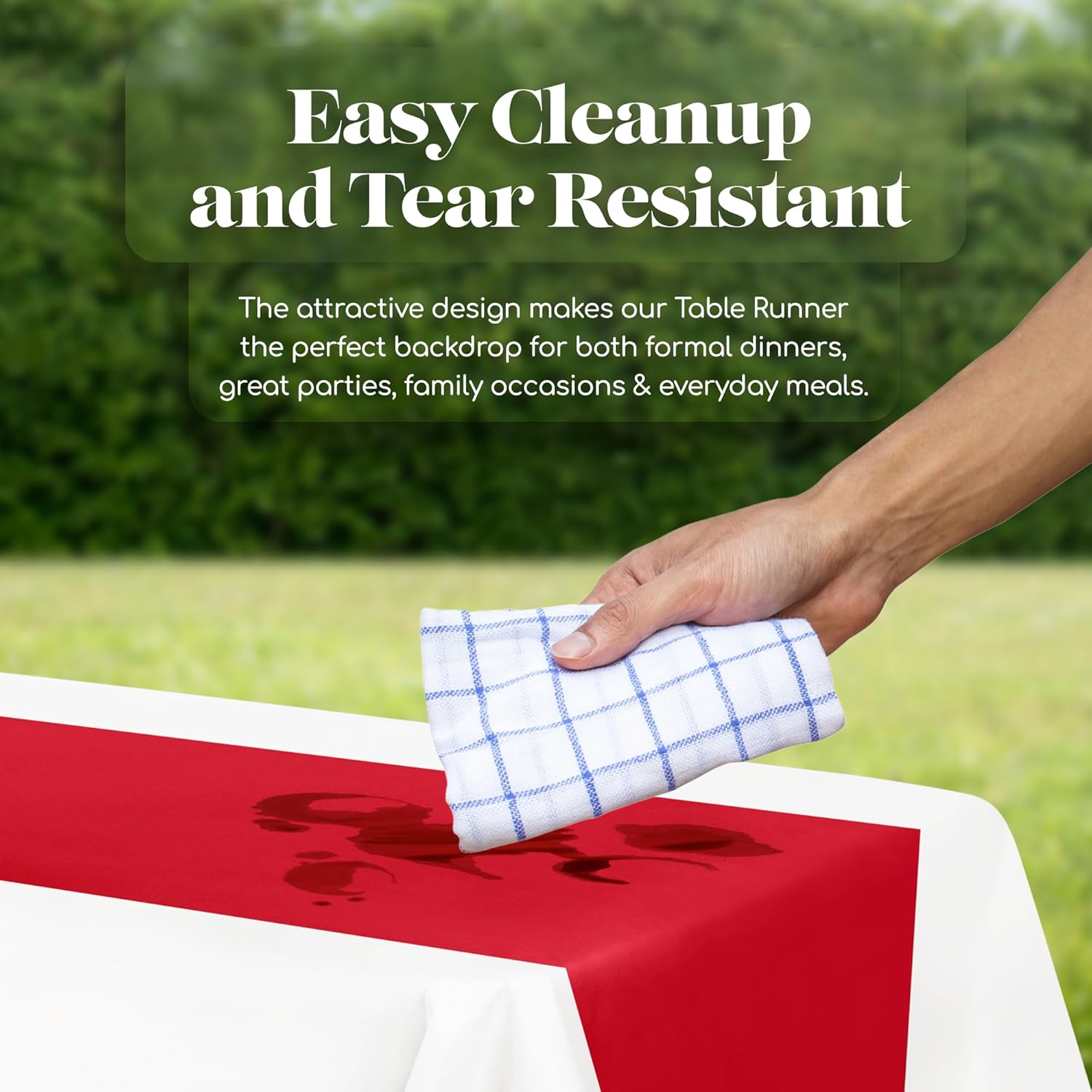 Red 6 Pack Premium Disposable Plastic Table Runner 14 x 108 Inch. Table Runner for Dinner Parties & Events by Grandipity