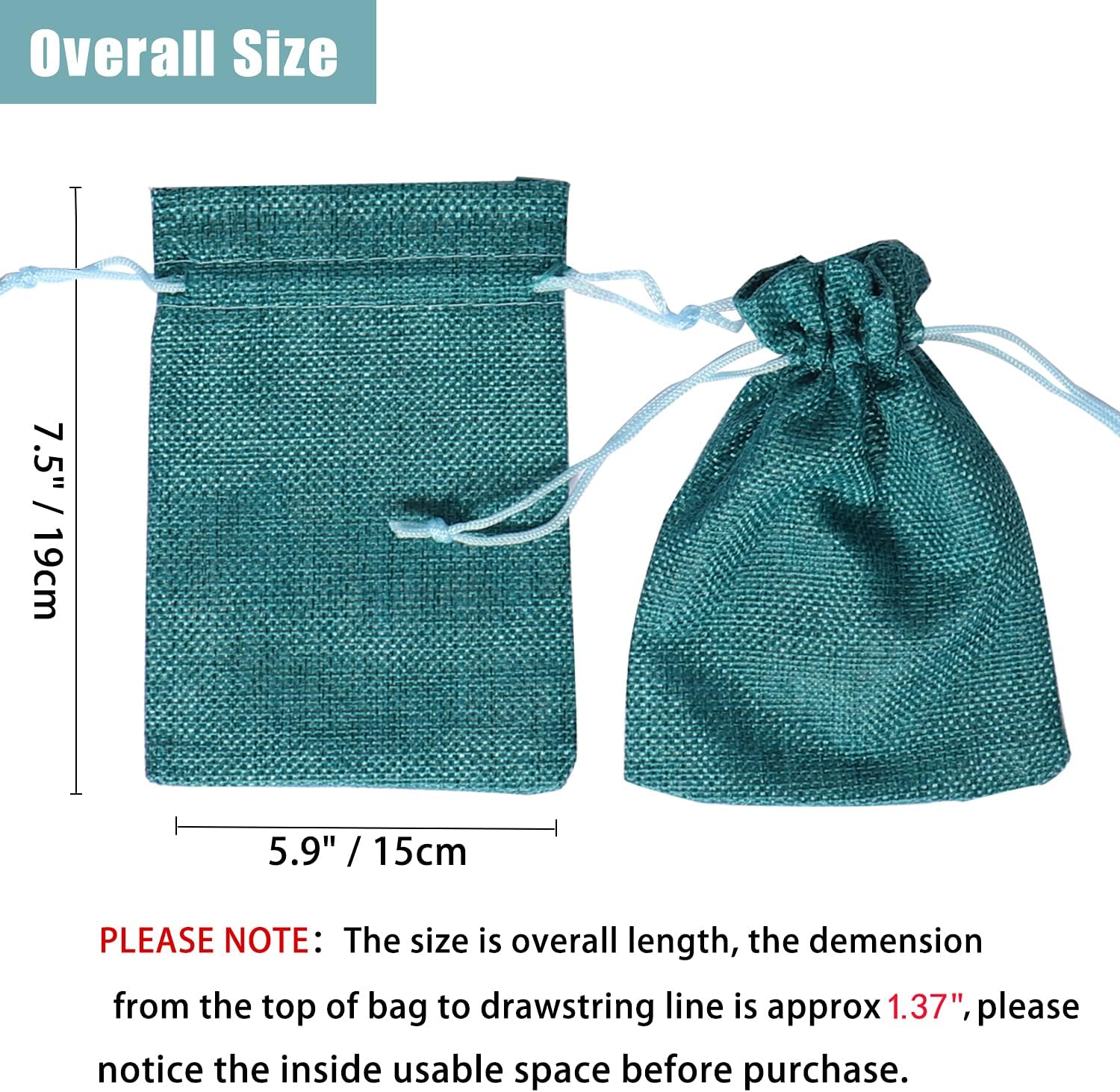 20Pcs Burlap Bags with Drawstring, 5.9x7.5 inch Burlap Gift Bag Linen Jewelry Pouches for Wedding Favors, Party, DIY Craft (Peacock Blue)