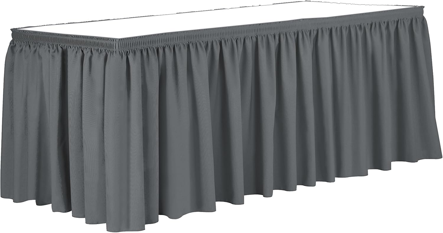 Ultimate Textile Pleat Polyester Fabric Table Skirt - Machine Washable Flame Resistant with Clips for Events, Weddings & Trade Shows, Cut & Sewn in Paterson, NJ - Charcoal, 17' Shirred Pleat