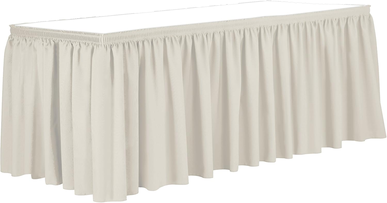 Ultimate Textile Pleat Polyester Fabric Table Skirt - Machine Washable Flame Resistant with Clips for Events, Weddings & Trade Shows, Cut & Sewn in Paterson, NJ - Ivory, 17' Shirred Pleat