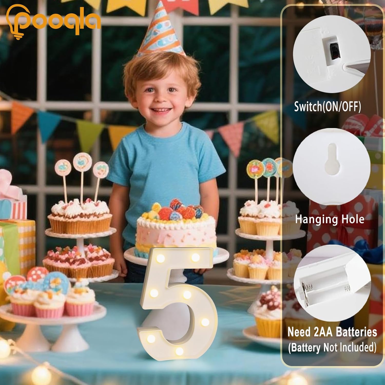 Pooqla Decorative LED Light Up Number Letters, White Plastic Marquee Lights Sign Party Wedding Decor, Battery Operated (5)