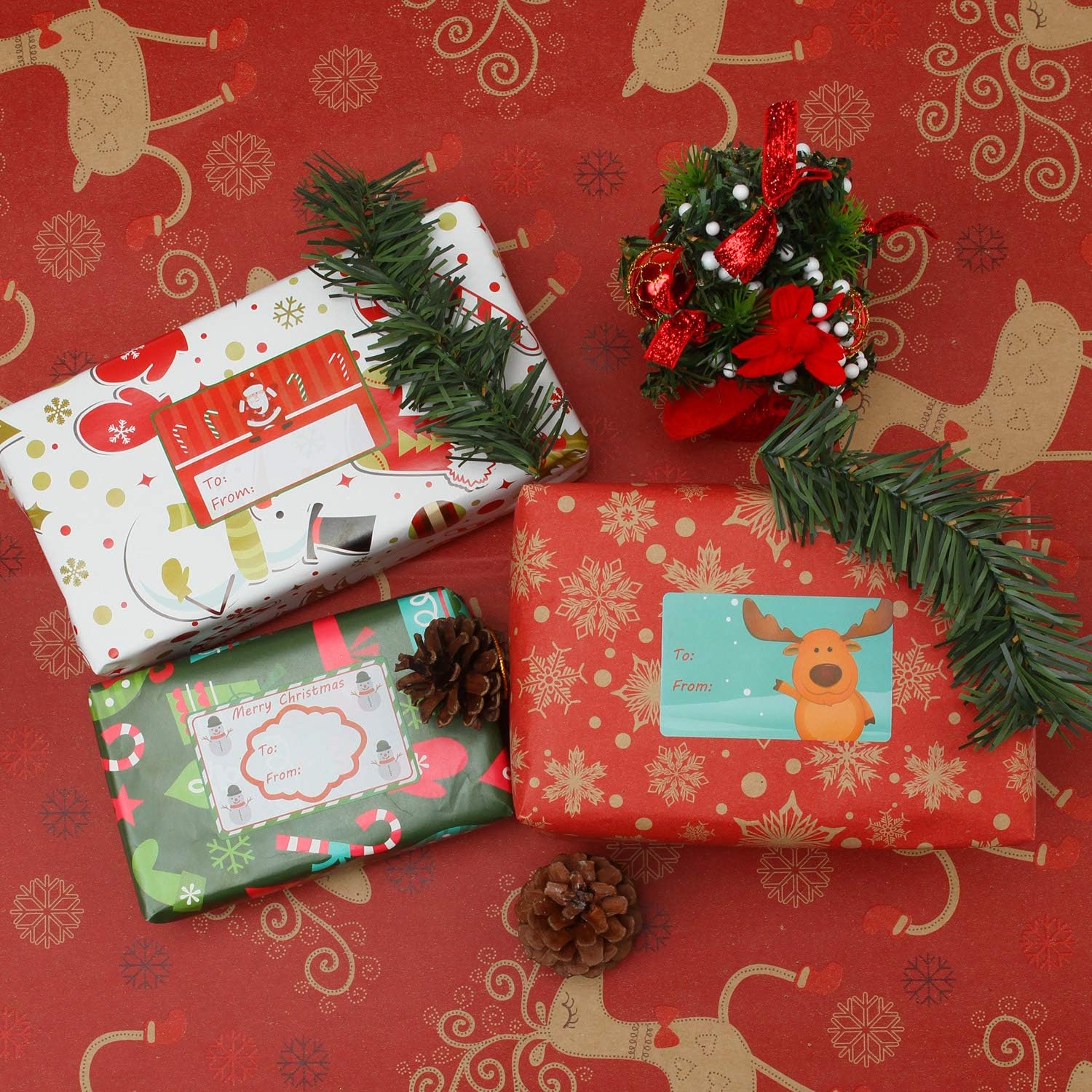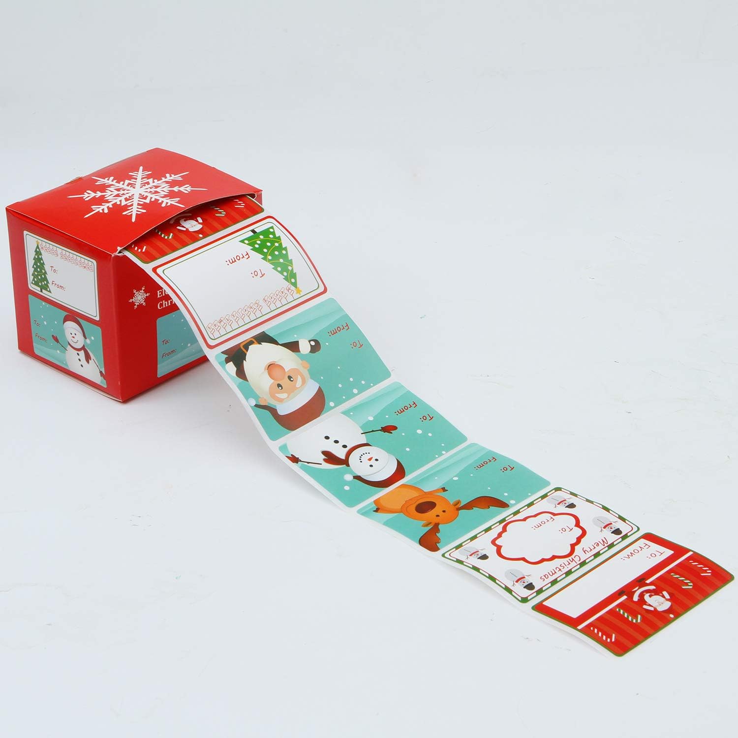 Elcoho 300 Pieces Christmas Self Adhesive Gift Tag Self Stick Stickers Gift Name Tag Christmas Stickers with 6 Different Designs (Color B)