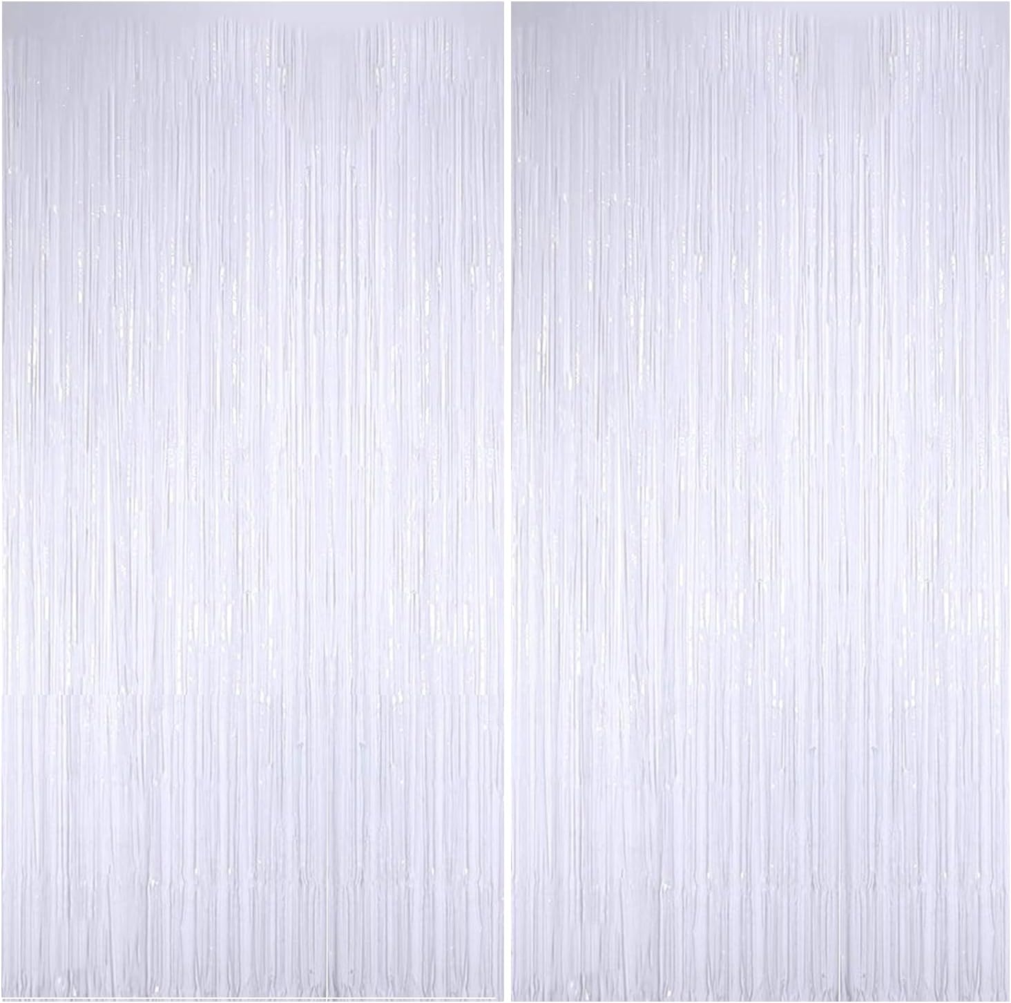 BEISHIDA 2 Pcs White Door Streamers Tinsel Curtain Party Streamers Backdrop Fringe Foil Wall Background for Birthday Halloween Christmas Wedding Party Decoration(3.28 ft x 6.56 ft)
