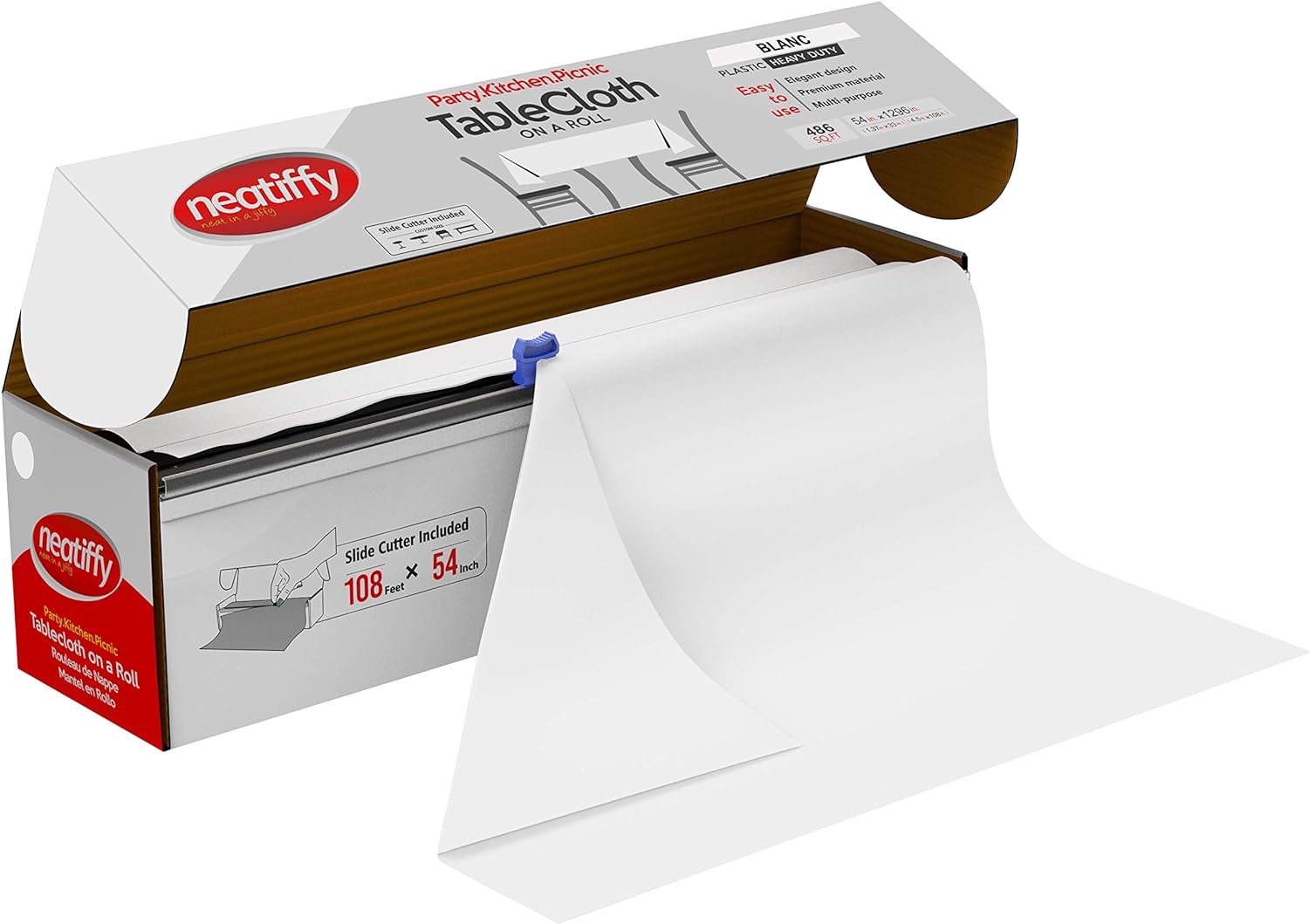 - ✔️ SLIDE-CUTTER FOR CUSTOM LENGTH: Cut to suit your preference and party needs! Each roll of tablecloth is equipped with a slide cutter, allowing you to create a perfectly sized plastic cover for Rectangle, Square, Round or Oval tables. Our covers are neatly rolled in a box, so you can cut as much as you need while keeping the rest for later.