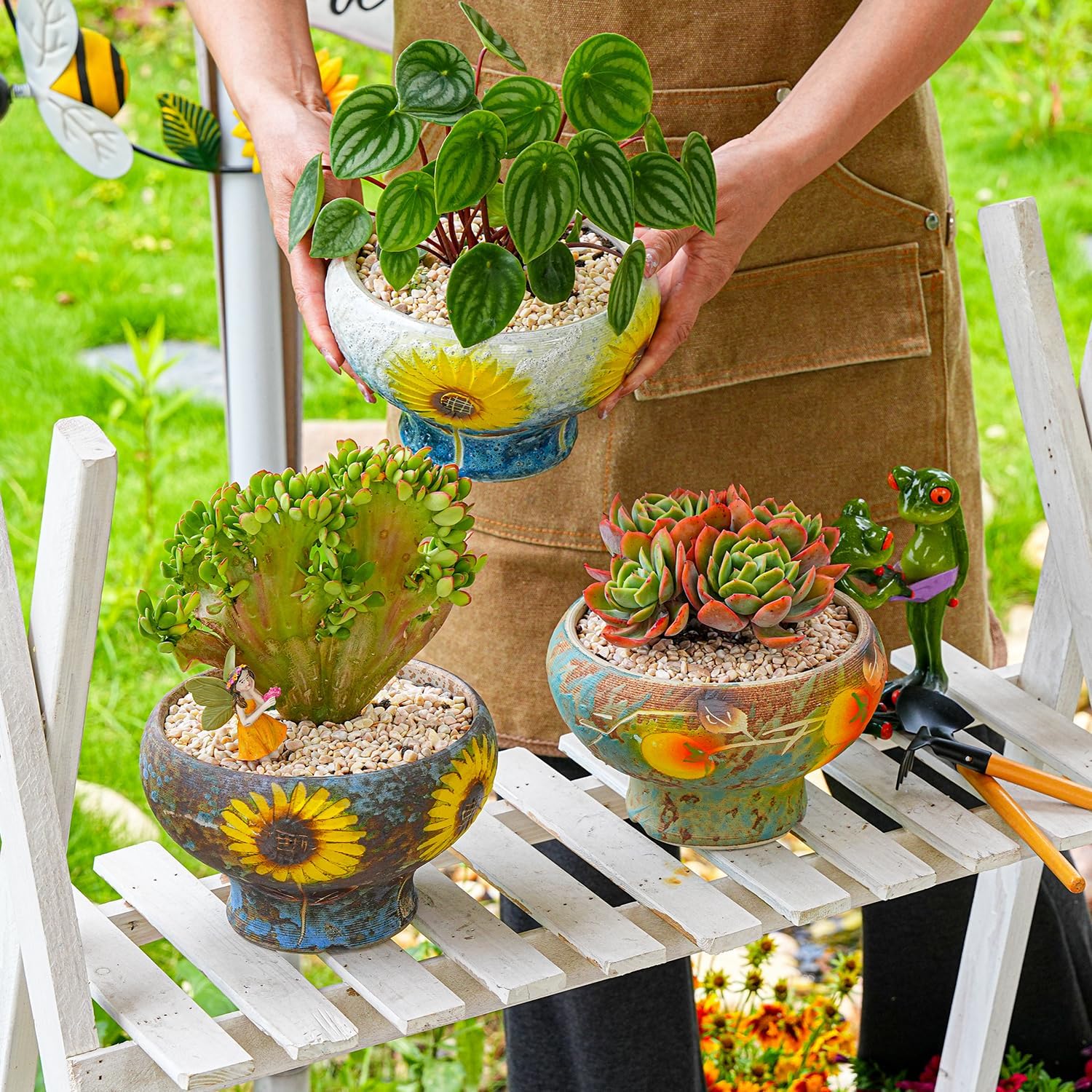 - Handicrafts: This set of beautifully design ceramic succulent pots are handcrafted, beautiful vibrant colors with hand painted flower. The subtle variations in the glaze add character, great artistry and attractive.