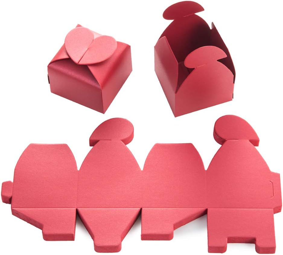 AWELL Burgundy Favor Box Bulk 2.5x2x2.5 inches with Heart Bow Party Favor Box,Burgundy,Pack of 50