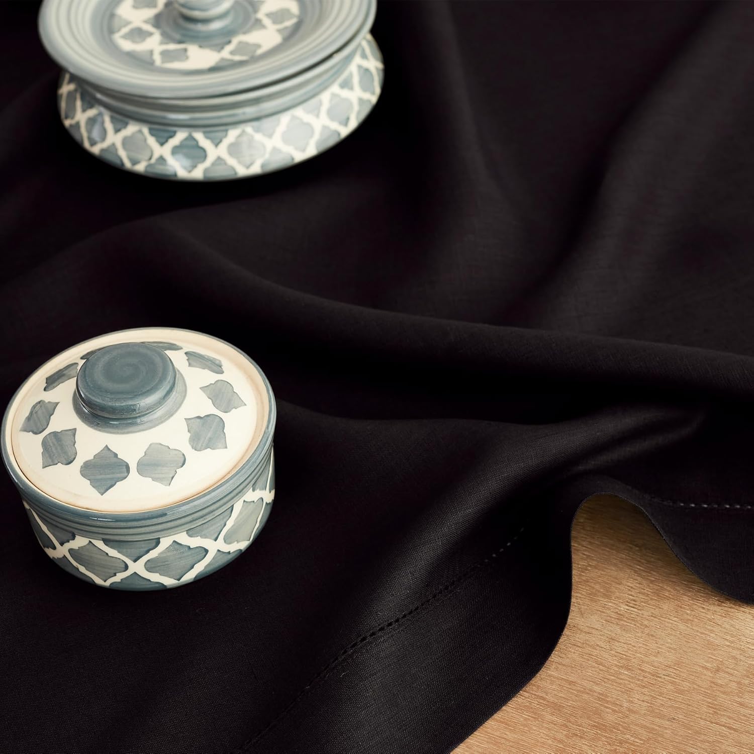 Solino Home Black Linen Tablecloth 52 x 52 Inch - 100% Pure Linen Square Table Throw - Classic Hemstitch, Machine Washable Table Cloth for Fall, Autumn, Halloween, Thanksgiving, Holiday