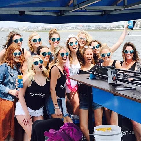 - THE FULL SET---This Bachelorette Party supplies kit contains a total of 1 Pair of white 'Bride' Sunglasses, 9 Pairs of Turquoise 'Brides tribe' Sunglasses. Great idea for Bachelorette party.