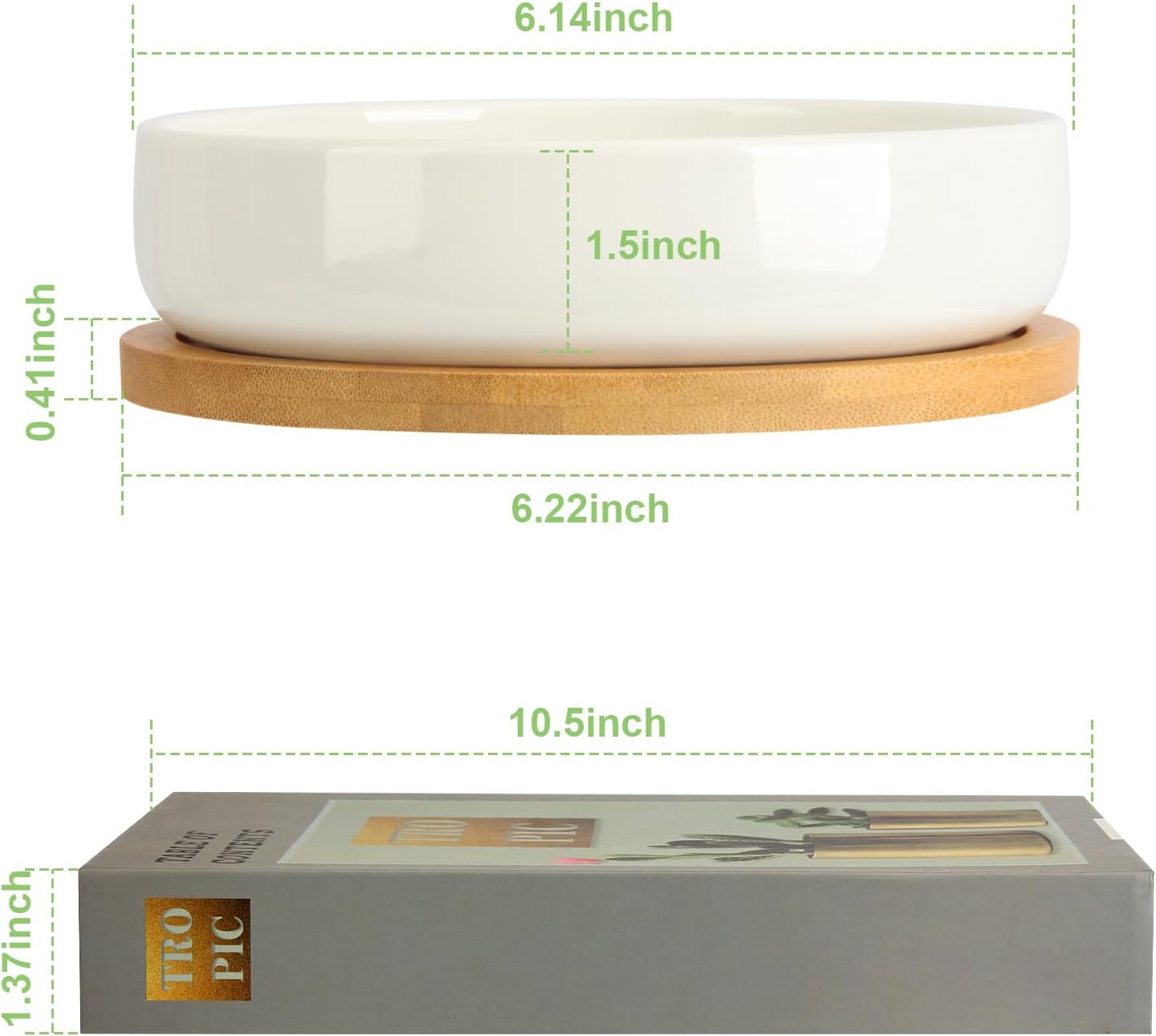 - Succulent Pots Great Value:2-pack shallow succulent pots with drainage and bamboo tray are ideal for small greenery,succulents,cactus,herbs,or flowers.A great way to bring a touch of nature to your indoor spaces.(Plants not included)