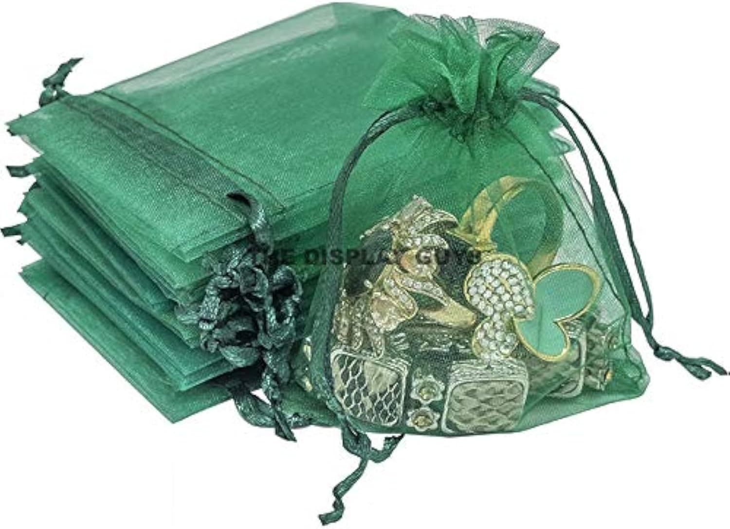 TheDisplayGuys 100-Pack 6x8 Dark Green Sheer Organza Gift Bags with Drawstring, Jewelry Candy Treat Wedding Party Favors Mesh Pouch
