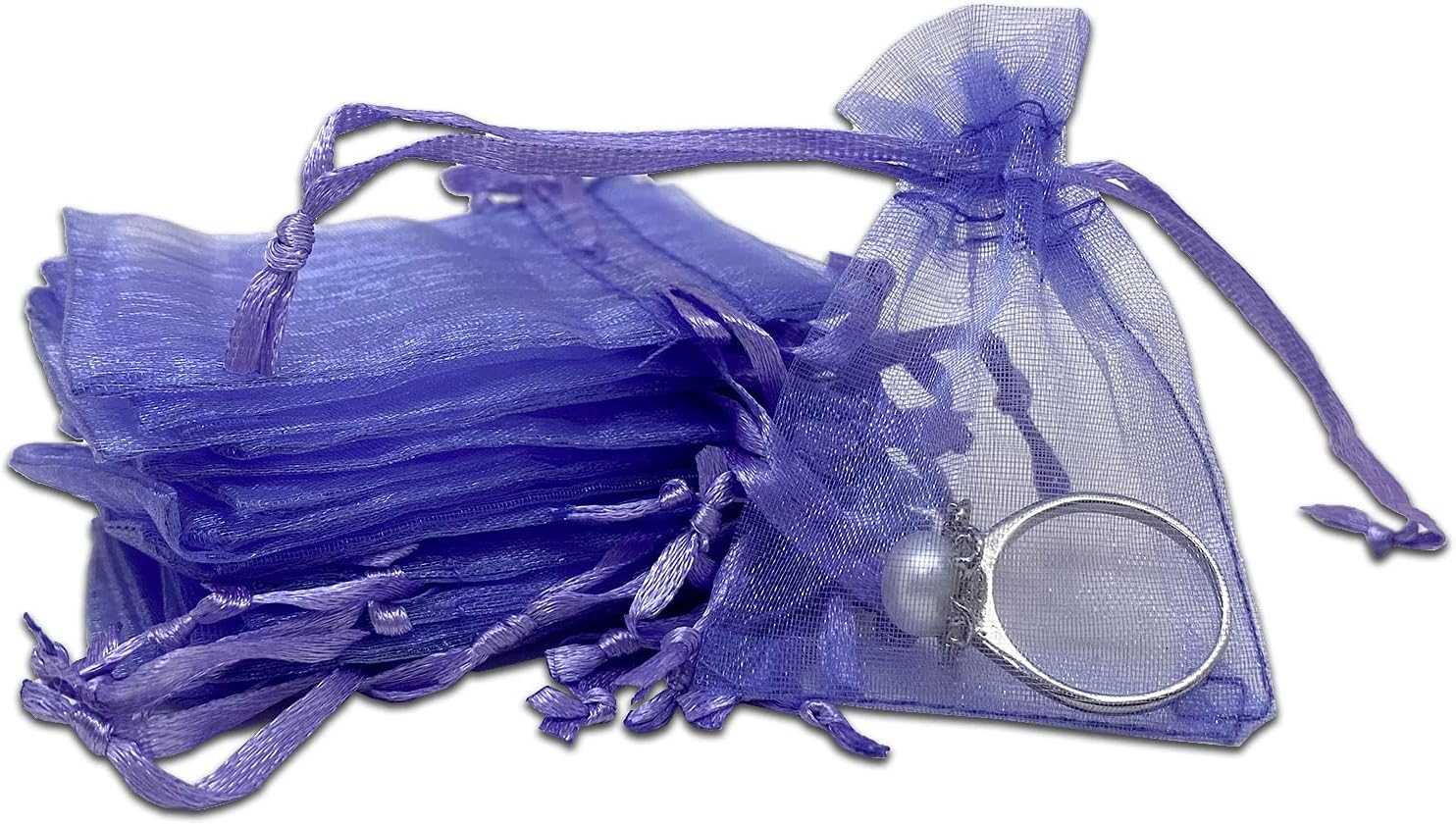 TheDisplayGuys 100-Pack XS 2 x 2 3/4" Lavender Sheer Organza Gift Bags with Drawstring, Jewelry Candy Treat Wedding Party Favors Mesh Pouch