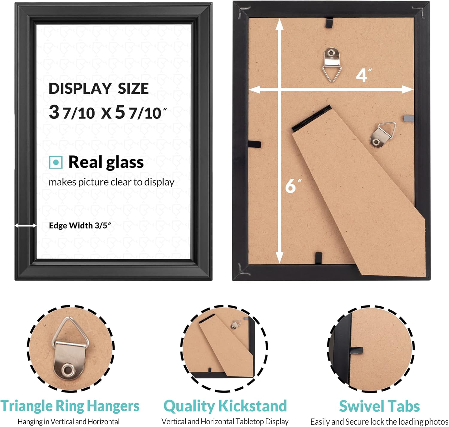 - PACKAGE INCLUDES - 12 Packs black frames, fits standard 4x6 inches pictures, photos, prints, with real glass to protect against dust and moisture. Tips: wall hooks or fasteners are not included in the package