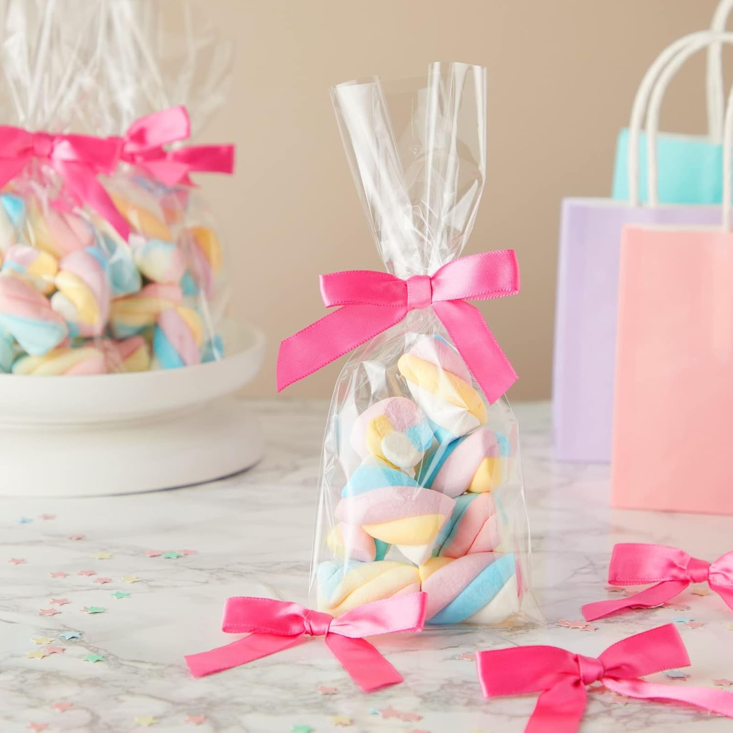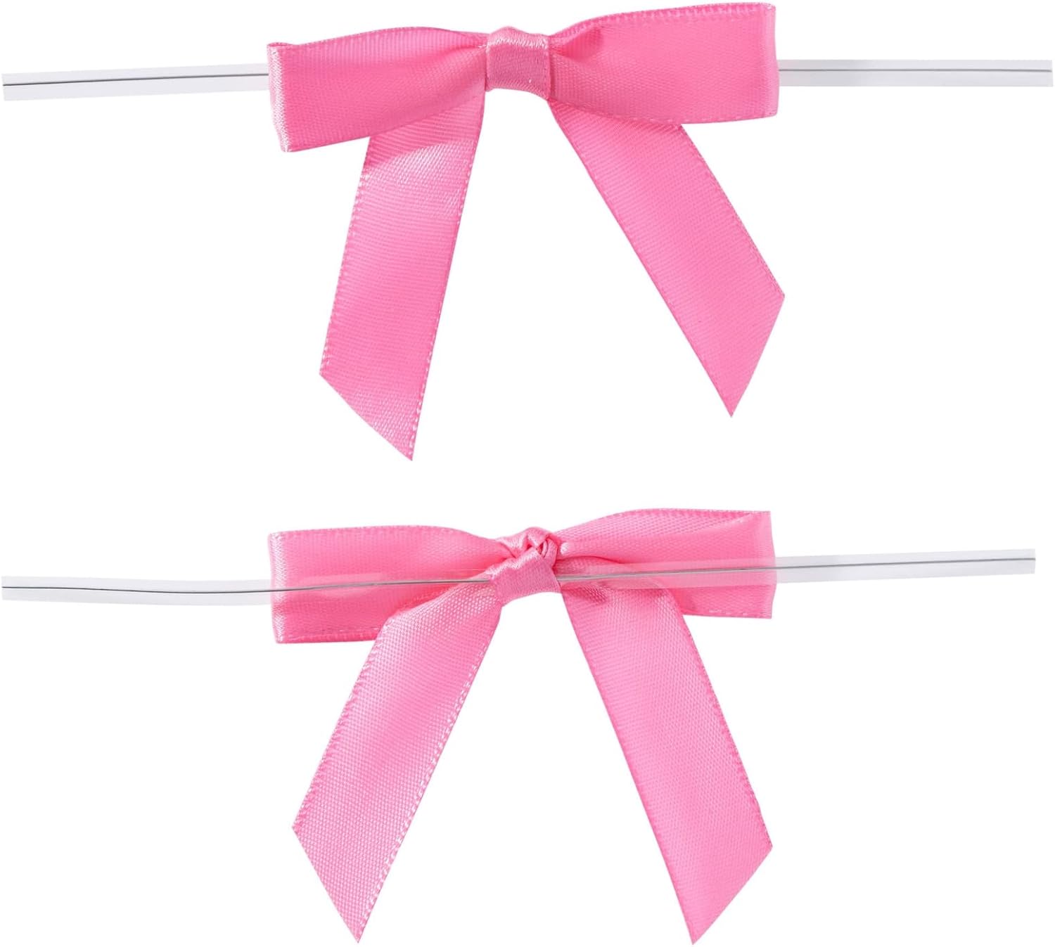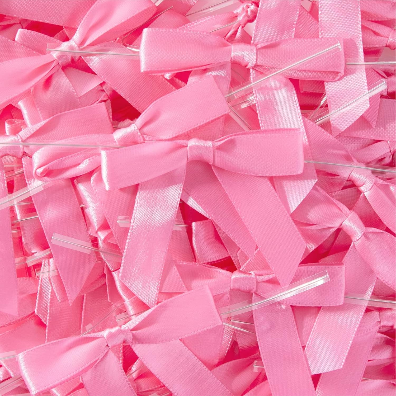 Juvale Pink Twist Tie Gift Bows - Pre-Tied Mini Bows for Crafts & Ribbon Twist Ties for Treat Bags - 100 Count, 3 x 2.5 in, Satin