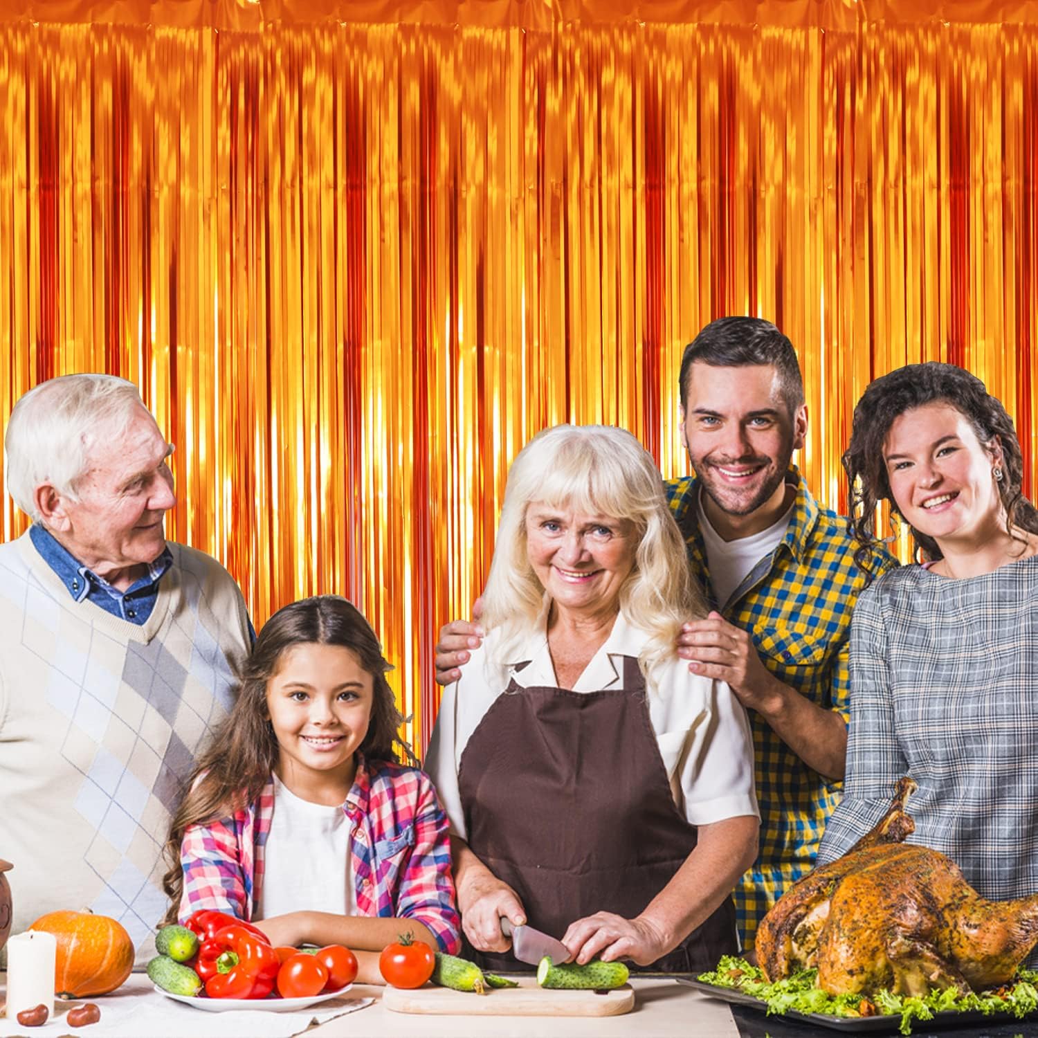 - Package Includes:1 pack orange foil fringe curtain,3.2 ft x 8.2 ft each,suitable for hanging on a door or coverage a wall fully