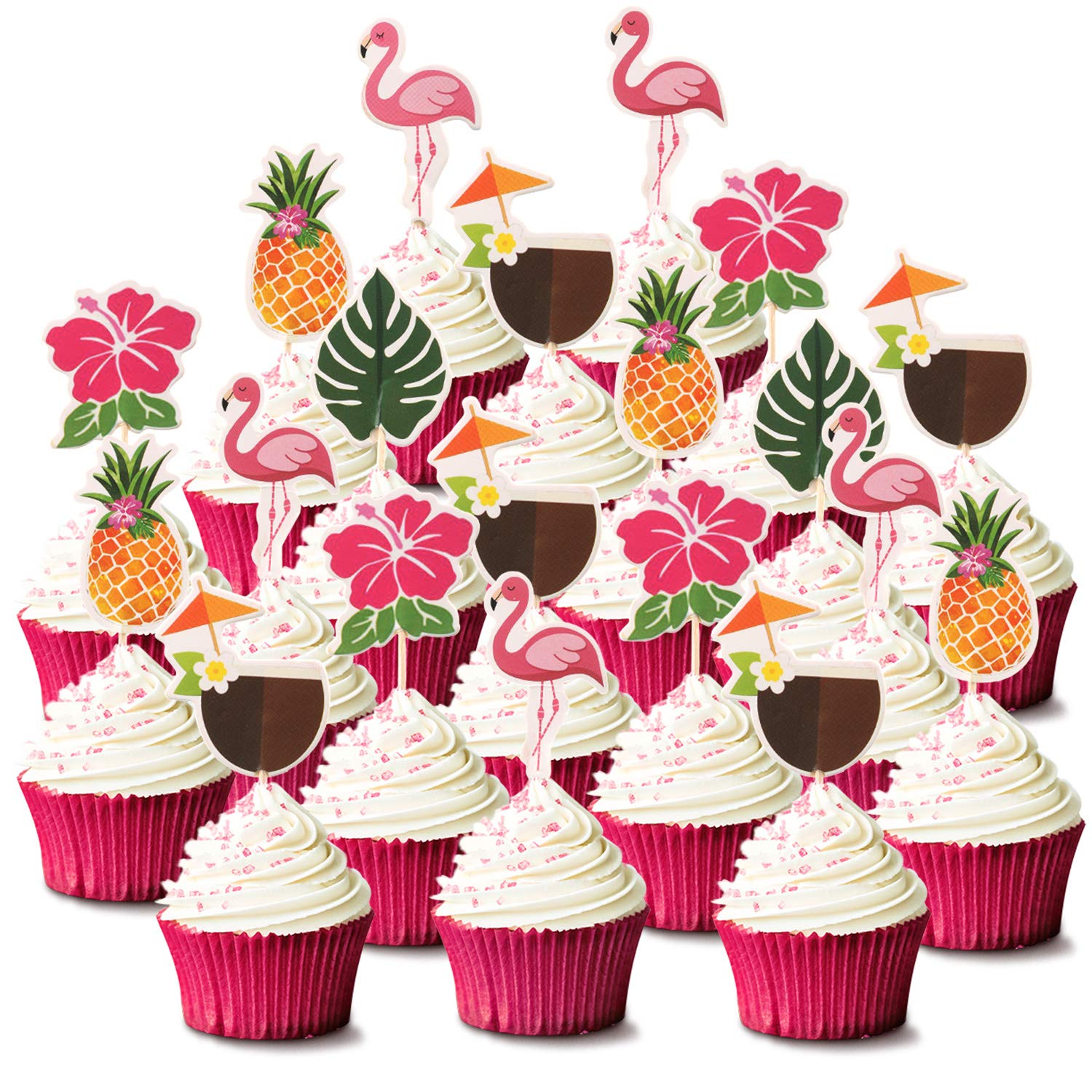 - Quality material: the hawaiian cupcake toppers are made of cardboard with toothpicks sticks, which is non-toxic and odorless, durable enough and not easy to break, safe and reliable for you to use
