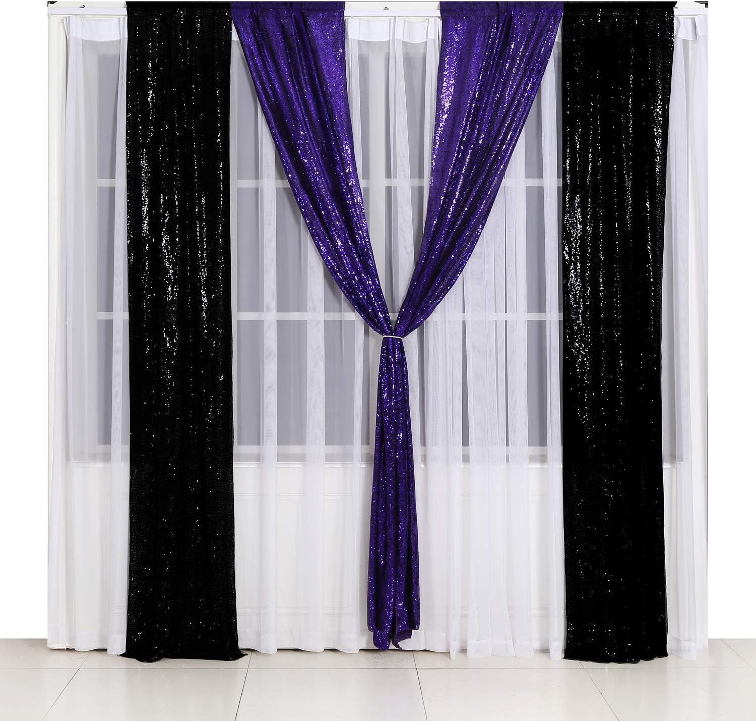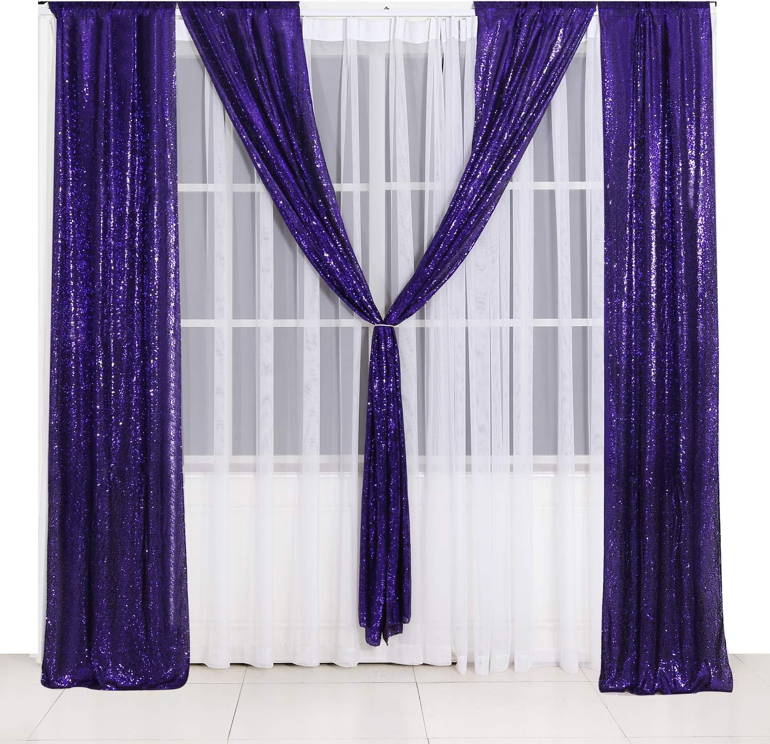 Poise3EHome 2ft x 8ft Purple Sequin Photography Backdrop Curtain 2 Panels for Party Decoration, Purple