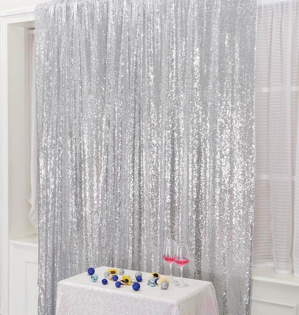 SquarePie Sequin Backdrop 6FT x 8FT Silver Curtain Background for Wedding Party Christmas