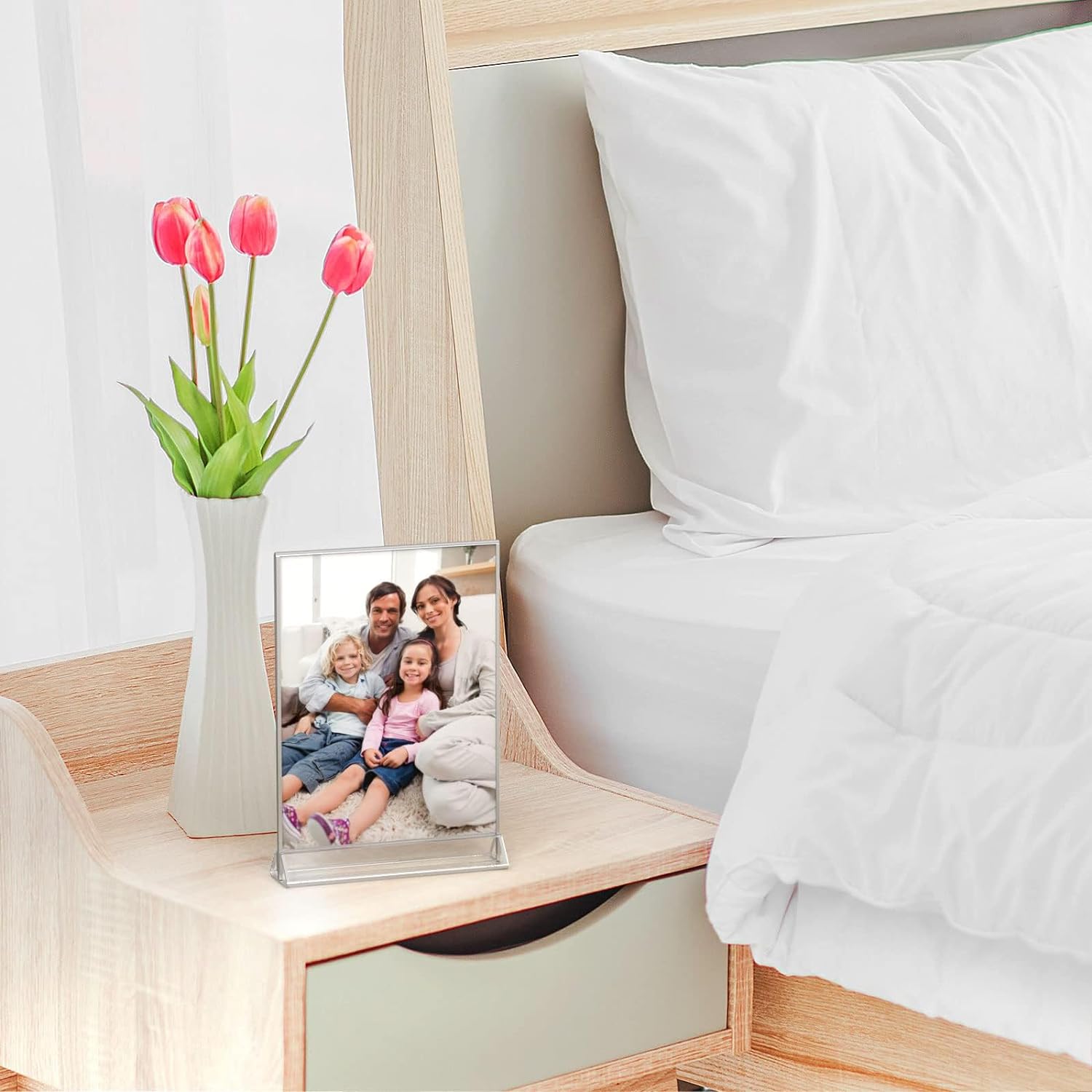 - PREMIUM CRYSTAL SUPER CLEAR ACRYLIC - Like other NIUBEE acrylic frames, this desktop picture frame is also used from high-quality acrylic, not a fragile, cheap plastic. Built with 4mm thick Sliver bolder and vertical stand, it is solid and stable in portrait positions on table.