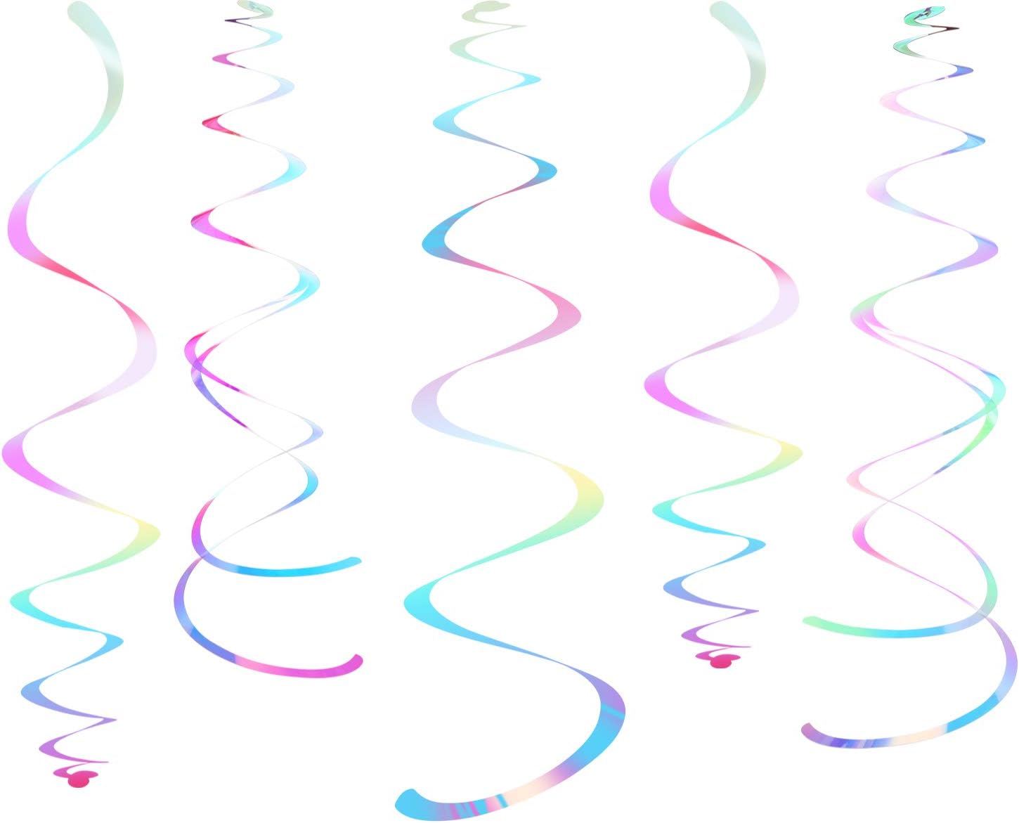 Iridescent White Party Hanging Swirl Decorations Shimmer Transparent White Plastic Streamer for Ceiling, Pack of 28