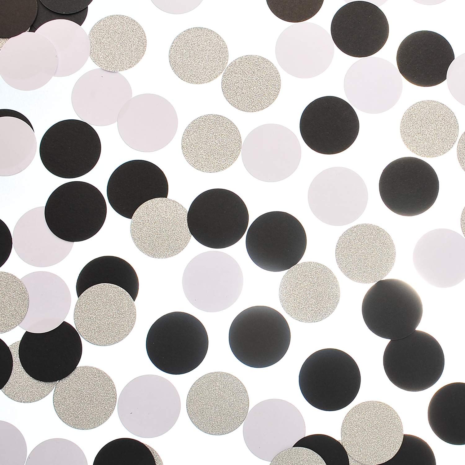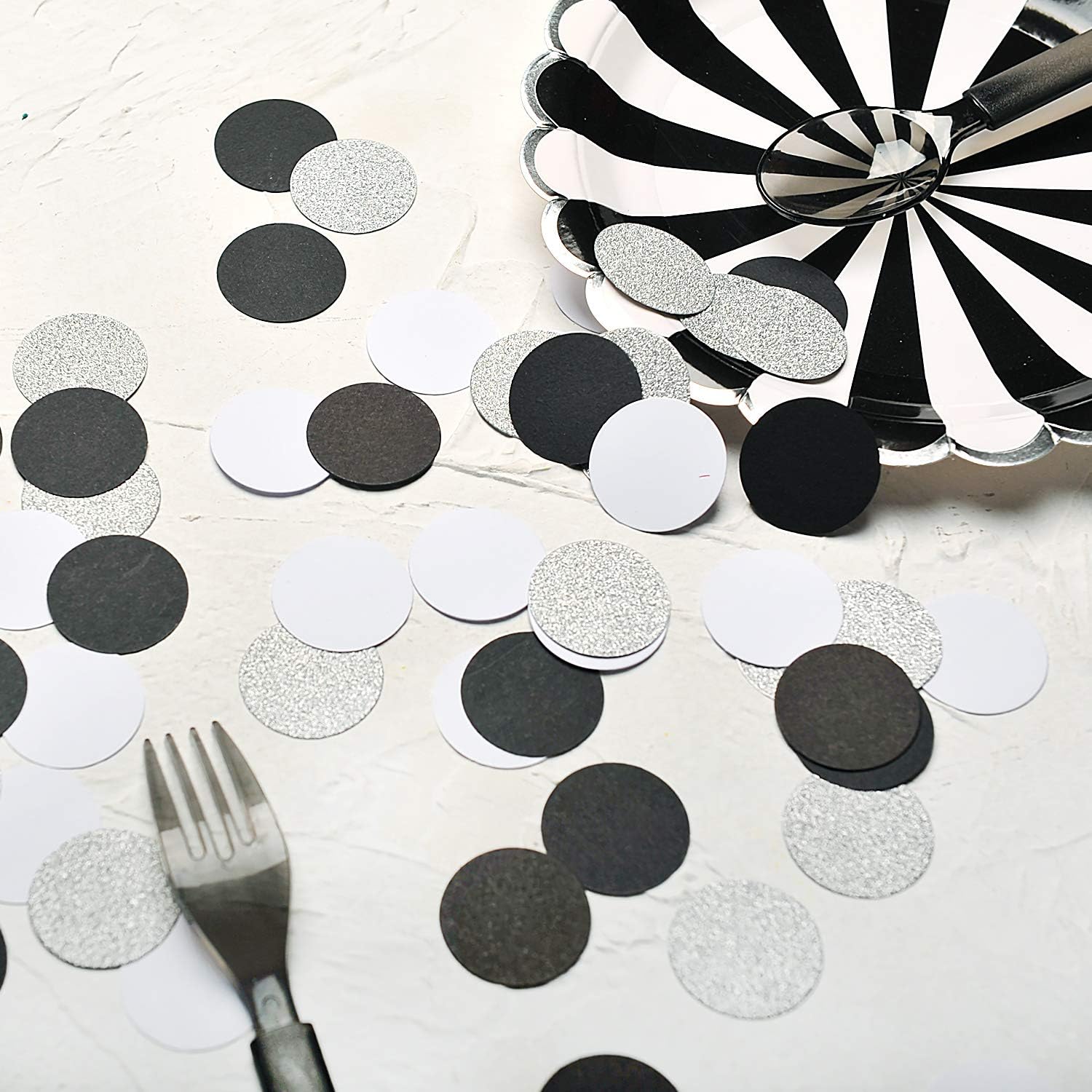 - Confetti Silver Glitter,Black,White. 200pc circle dots confetti,each dots 1.2’’ in diameter,high quality craft paper confetti