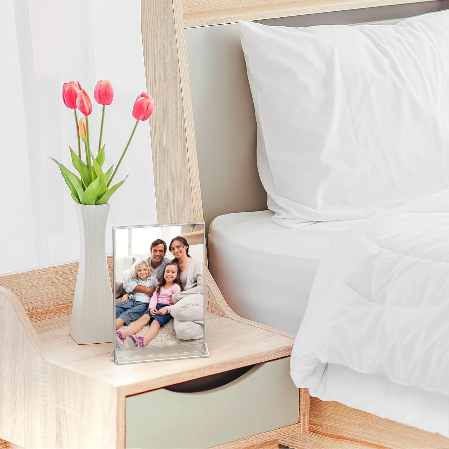 - DOUBLE SIDED DISPLAY - Upload your 4 x 6 inches pictures easily and directly with double sided see through frames allow you to view from both sides. Easy to clean and easy to update with new photos.