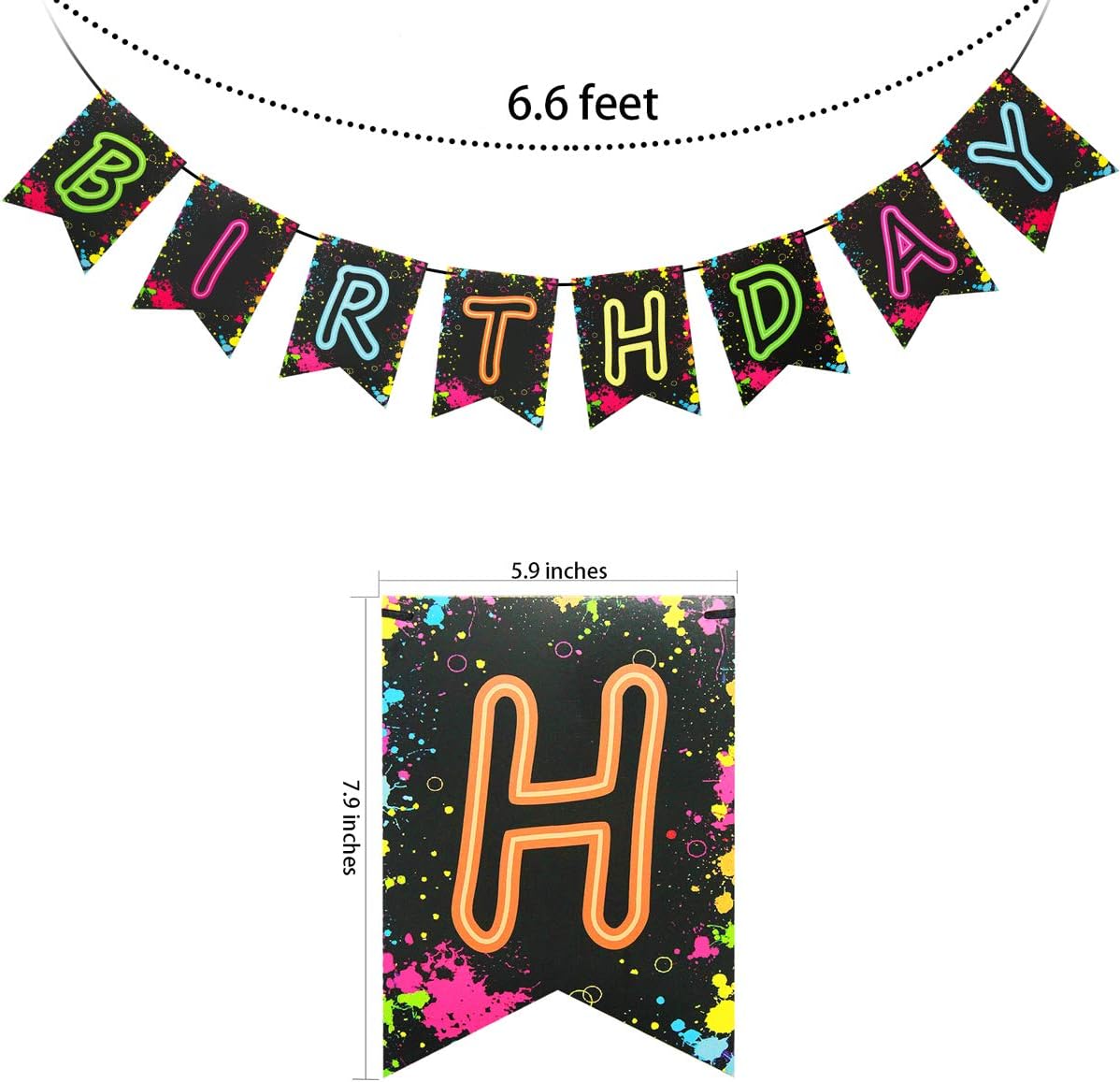 - Ready to use: The neon party supplies-Happy Birthday Banner comes ready to hang, never worry about fumbling to string the cards, just enjoy your happy time! Each pennant can be adjusted freely. Glow party birthday banner looks great at any venue