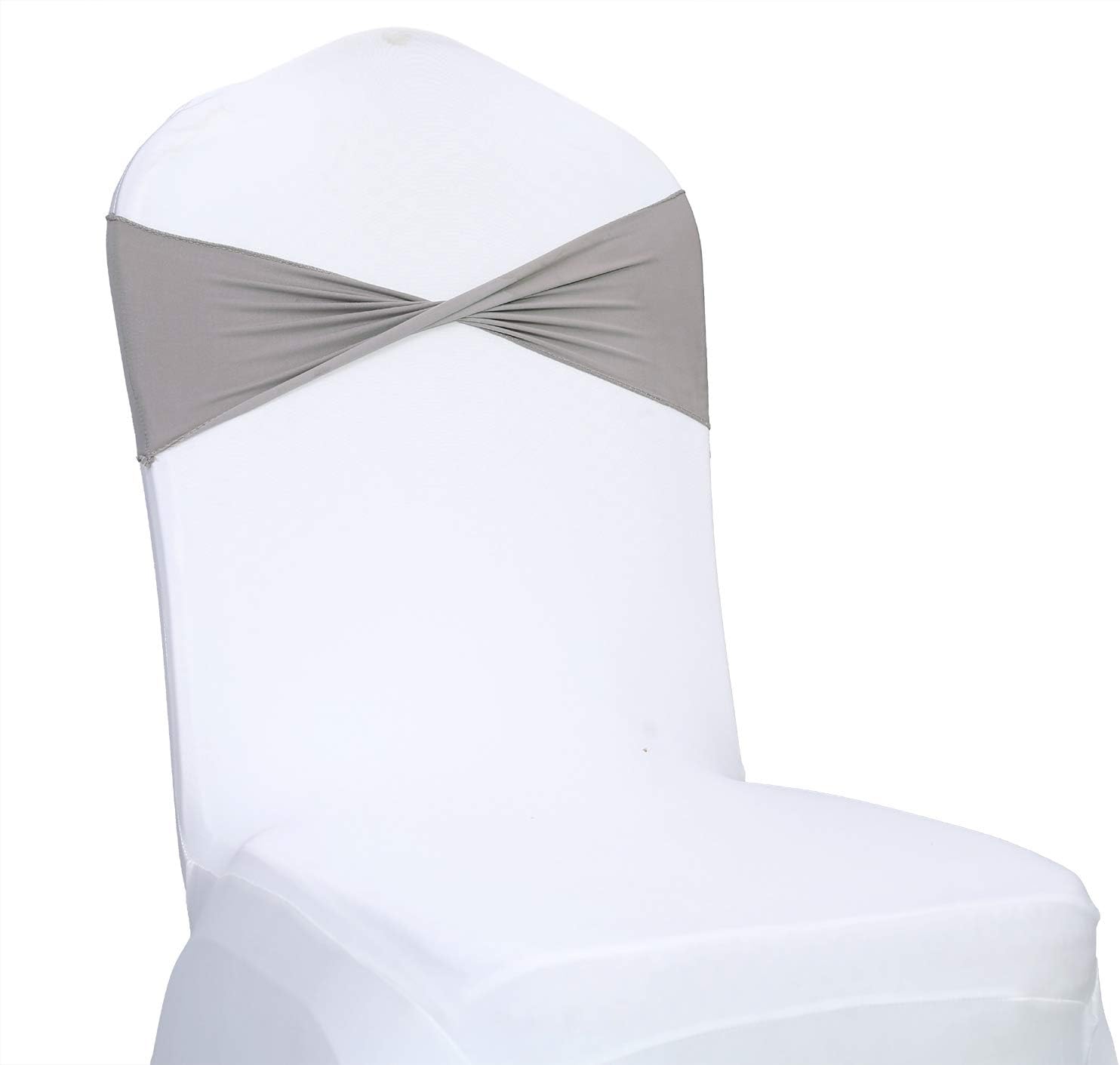 VDS Pack of 10 PCS | Silver Grey | Spandex Chair Sashes Bows Without Buckle | Stretch Elastic Banquet Universal Folding Chair Band Tie with for Wedding Party Conference Celebration Event Decoration
