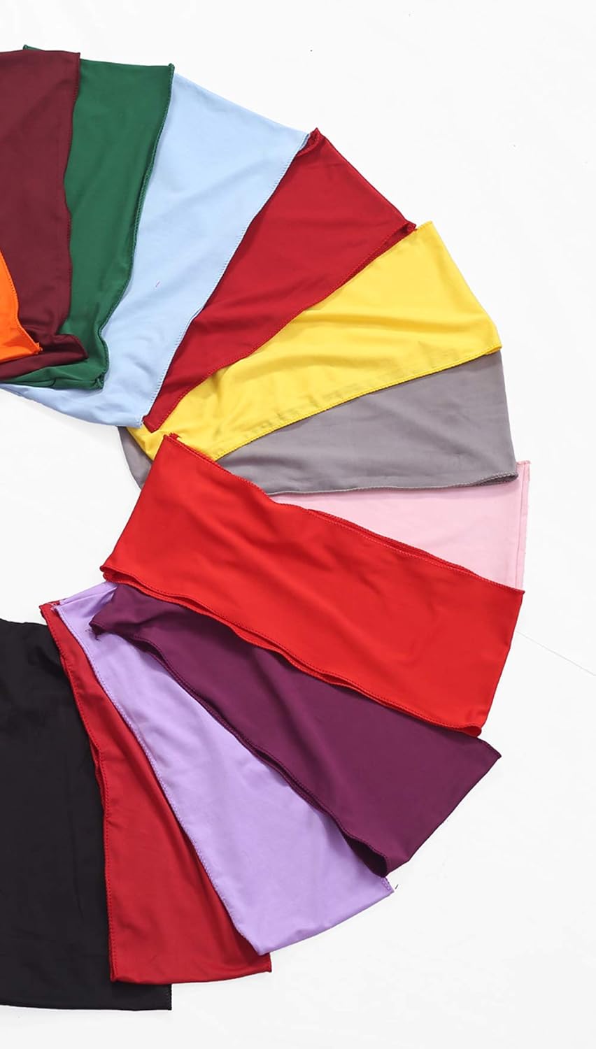 - π PERFECT SIZE: High quality spandex with good elasticity, stretch to fit almost chairs. It is 90% Polyester and 10% Spandex. Size: 5.9" x 14" Or 14cm (W)*35cm(L). Fit for all type chairs (35-50CM Chair Back Width). Package Includes: 10 PCS Chair Sashes.