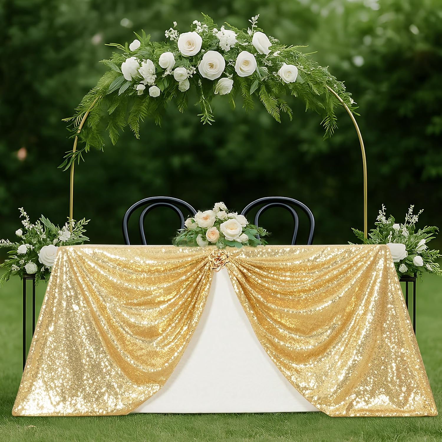SquarePie Sequin Tablecloth 60 x 120 Inch Light Gold Reflect Lights Bling Sparkly Table Cloth for Wedding Party