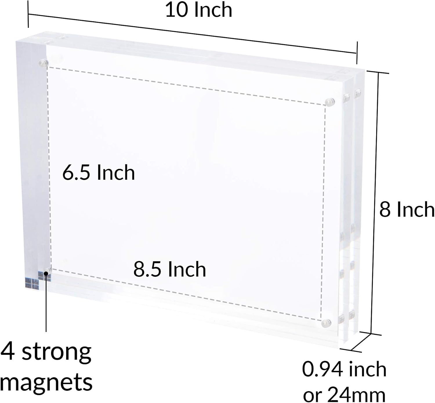 SimbaLux Magnetic Acrylic Picture Photo Frame 8x10 inches 24mm Thick with UV Protection (1 Pack) Clear Glass Like, Double Sided Frameless Desktop Floating Display, Free Standing, 20% Thicker than Most