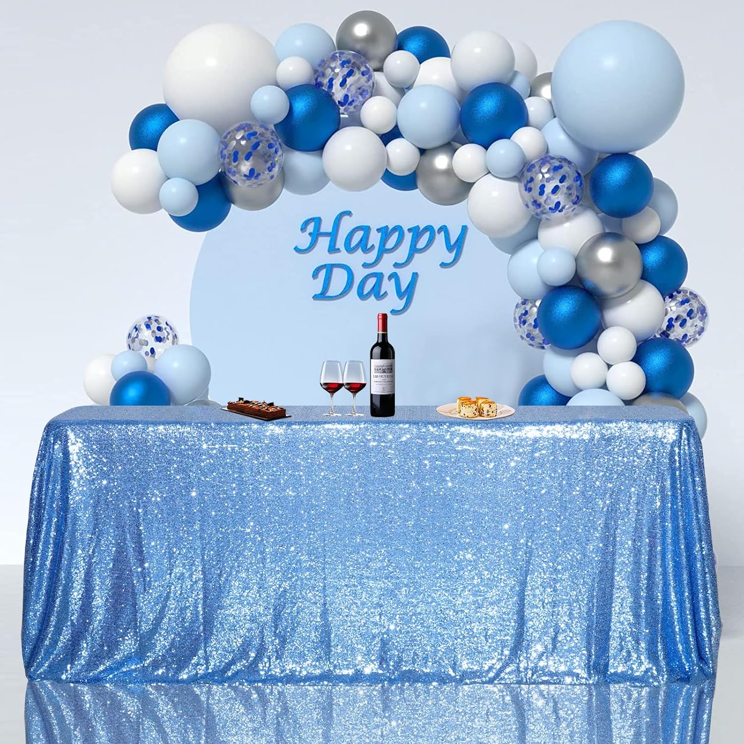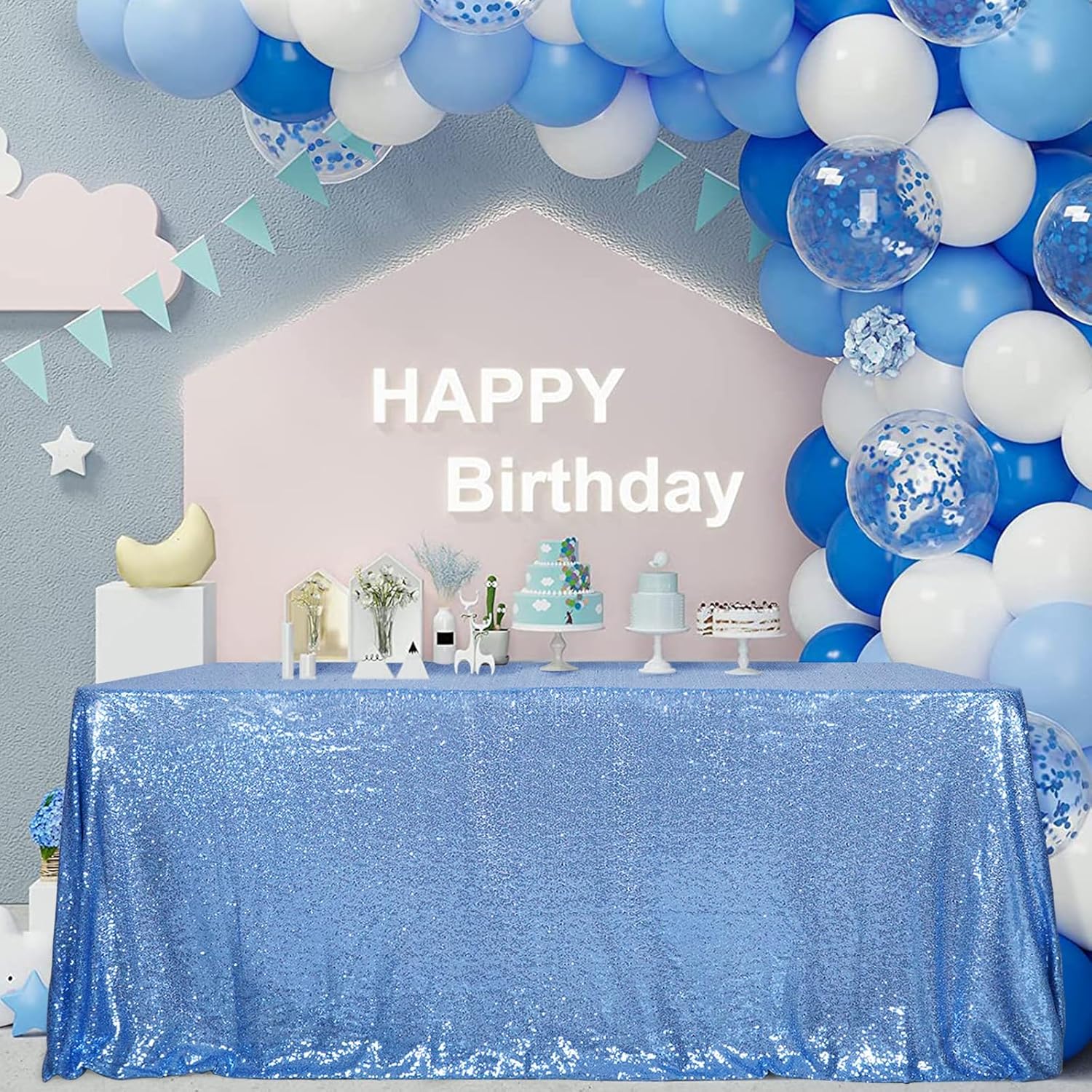SquarePie Sequin Tablecloth 50 x 72 Inch Baby Blue Sparkly Table Linen for Wedding Party