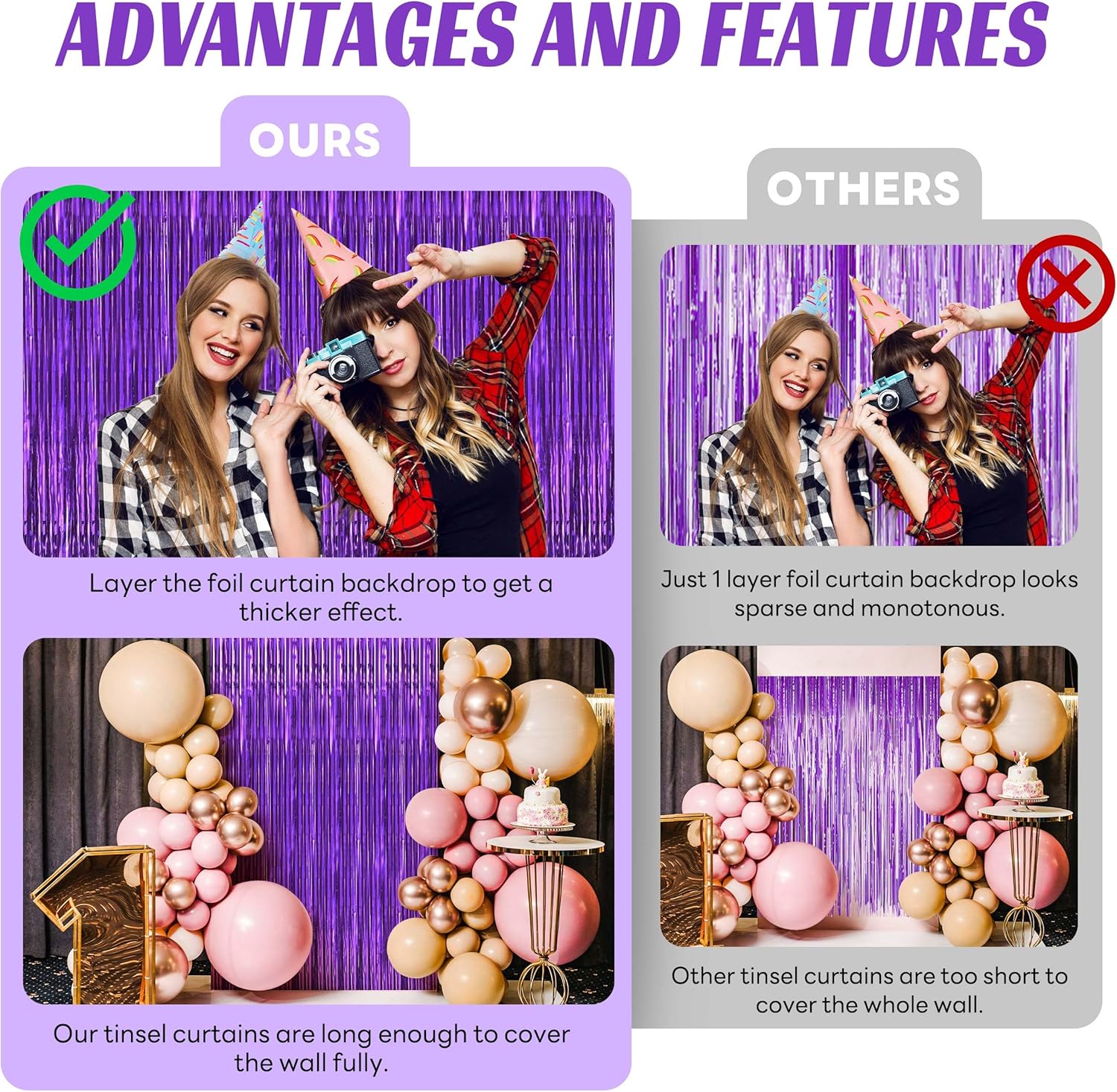 - Fantastic decoration:the beautiful tinsel backdrops are good for serving as party decorations, photography curtains, and so on; You will be surprised at the atmosphere and view they create