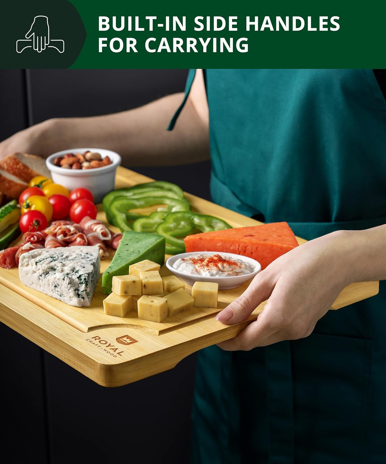 - ππ ππππ πππππππ πππ ππππππ ππ: Our professional grade cutting boards feature deep juice grooves to catch liquid from meats and fruitsβkeeping your counters clean and chopping boards spill-free for easy transfers.