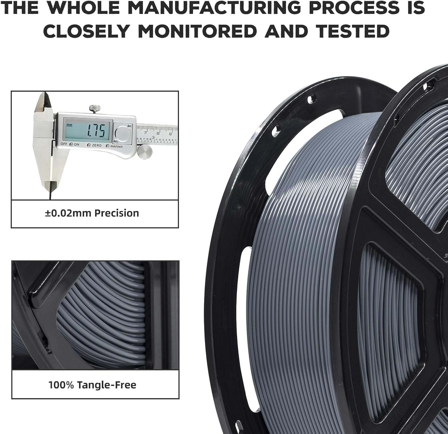 - Dimensional Accuracy and Consistency: Our filaments use advanced CCD measurement and adaptive control to maintain a diameter of 1.75mm +/- 0.02mm, ensuring consistent, high-quality prints.