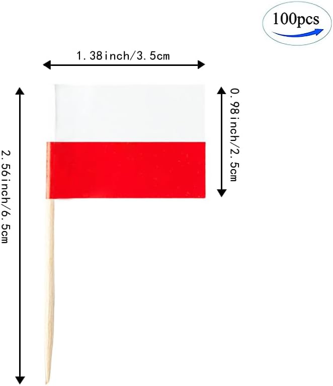 - Perfect Size for Food Decoration: This mini poland flag on stick measures 1.4 x 1 inches, with 2.5-inch stick β the ideal size for decorating appetizers, cupcakes, cakes, and snacks during patriotic events.