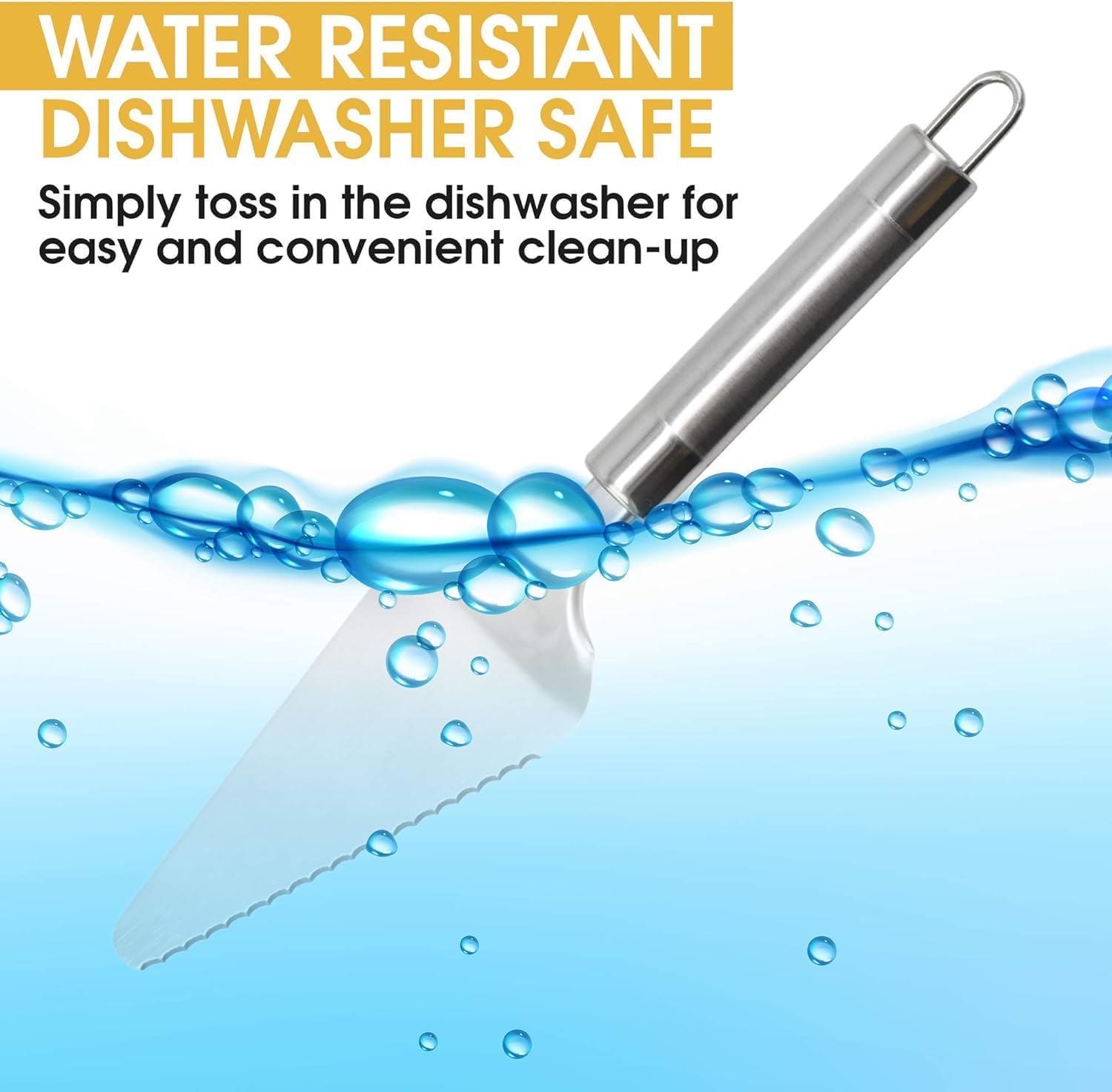 - EASY TO CLEAN: Cleaning up after a delightful dessert is hassle-free with our pie server and cake slicer set. The stainless steel construction ensures easy washing and is dishwasher safe, saving you time and effort in the kitchen.