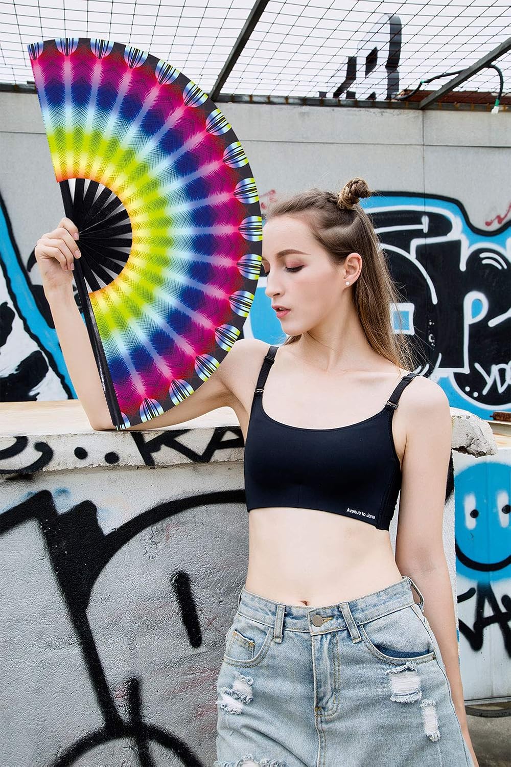 Amajiji Large Folding Hand Rave Fan Popping Fan for Line Dancing Clacking Fans for Boots On The Ground Dance,Party,Decoration,Festival (Aperture)
