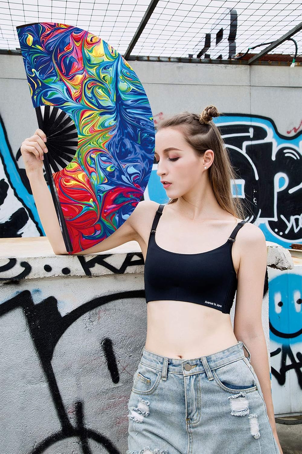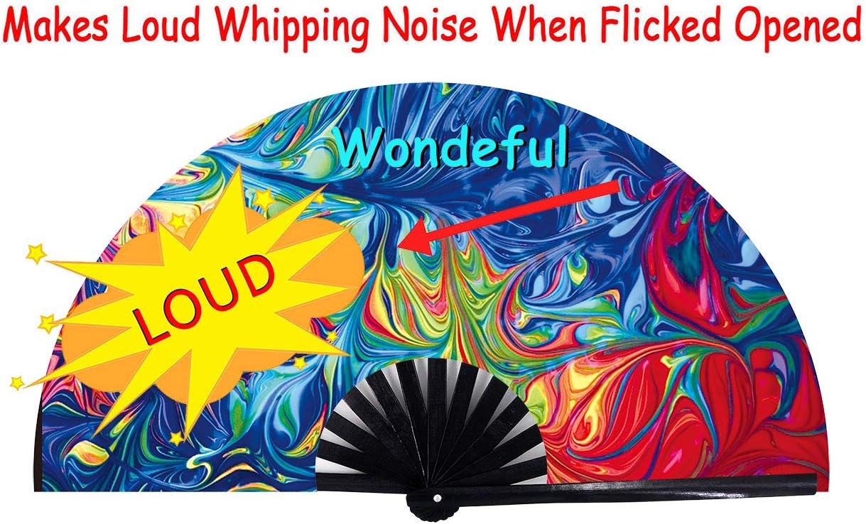 Amajiji Large Folding Hand Rave Fan Popping Fan for Line Dancing Clacking Fans for Boots On The Ground Dance,Party,Decoration,Festival (Ice Fire)