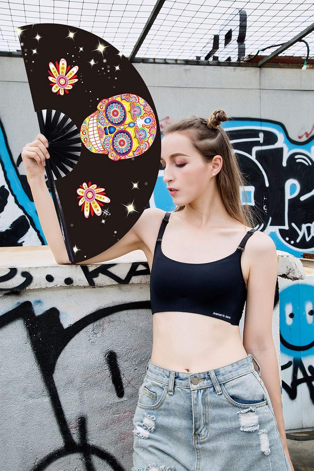 Amajiji Large Folding Hand Rave Fan Popping Fan for Line Dancing Clacking Fans for Boots On The Ground Dance,Party,Decoration,Festival (Alien)