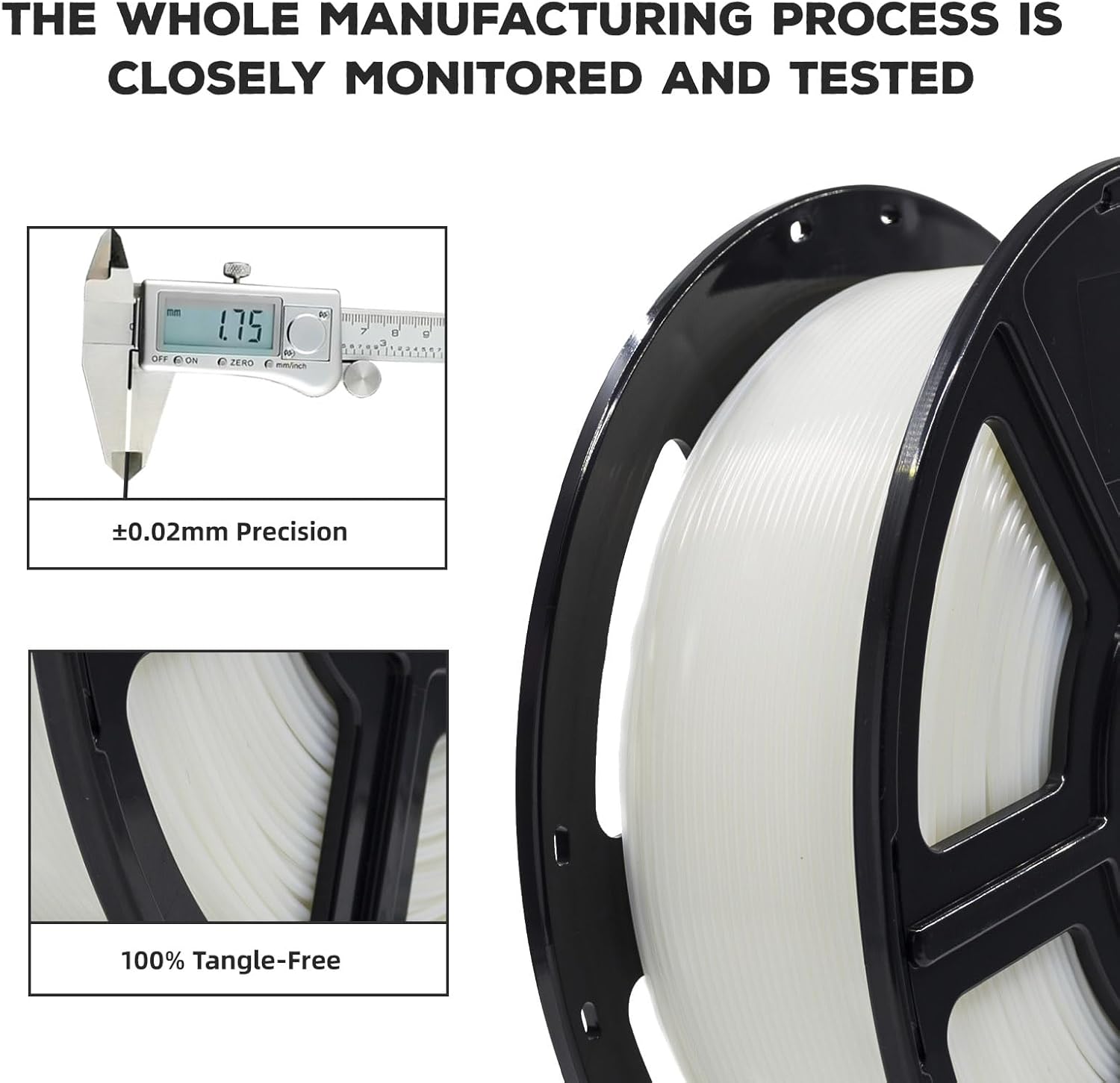 - Dimensional Accuracy and Consistency: Our filaments use advanced CCD measurement and adaptive control to maintain a diameter of 1.75mm +/- 0.02mm, ensuring consistent, high-quality prints.