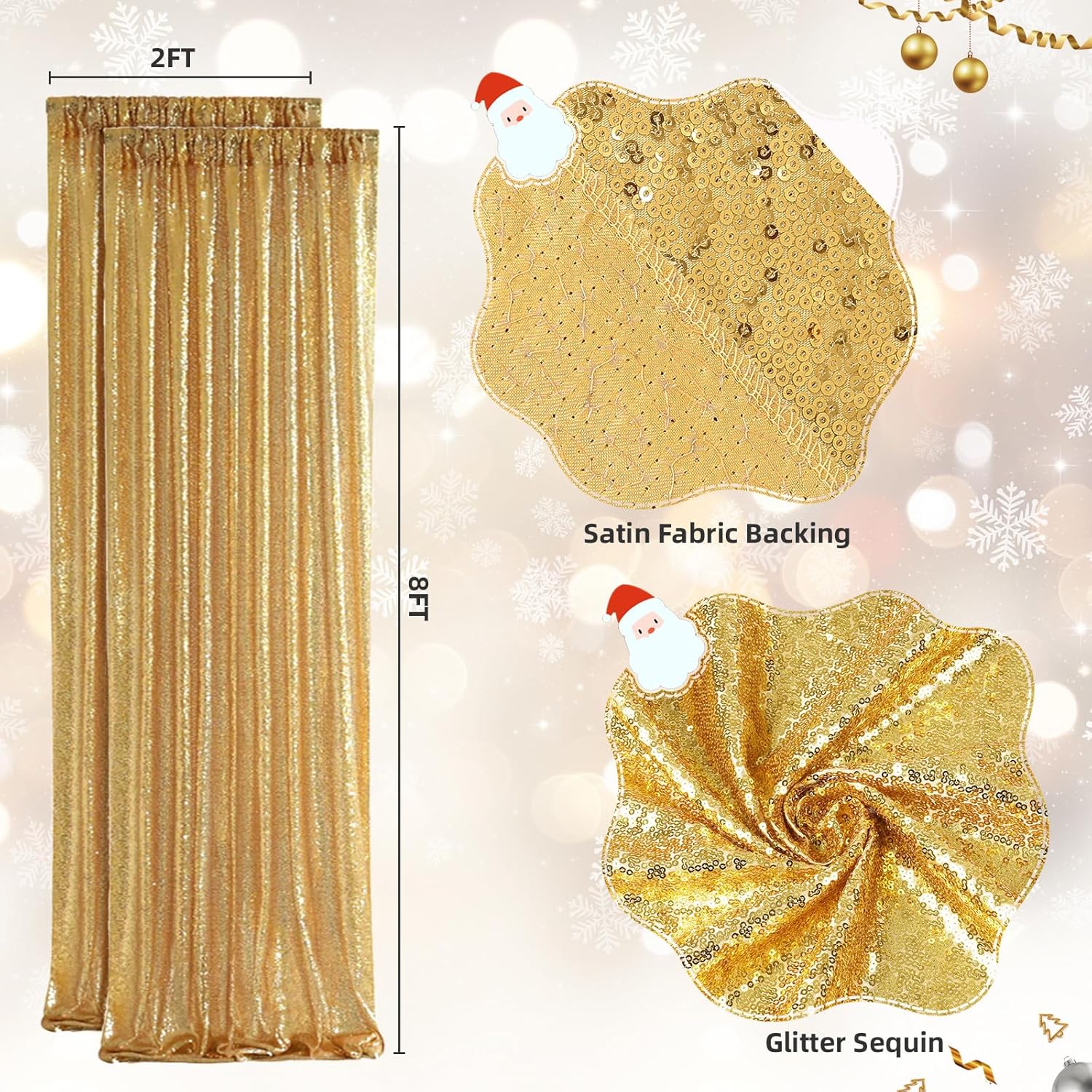 SquarePie Sequin Backdrop Curtain Not See Through Background for Wedding Party 2FT x 8FT 2P Gold