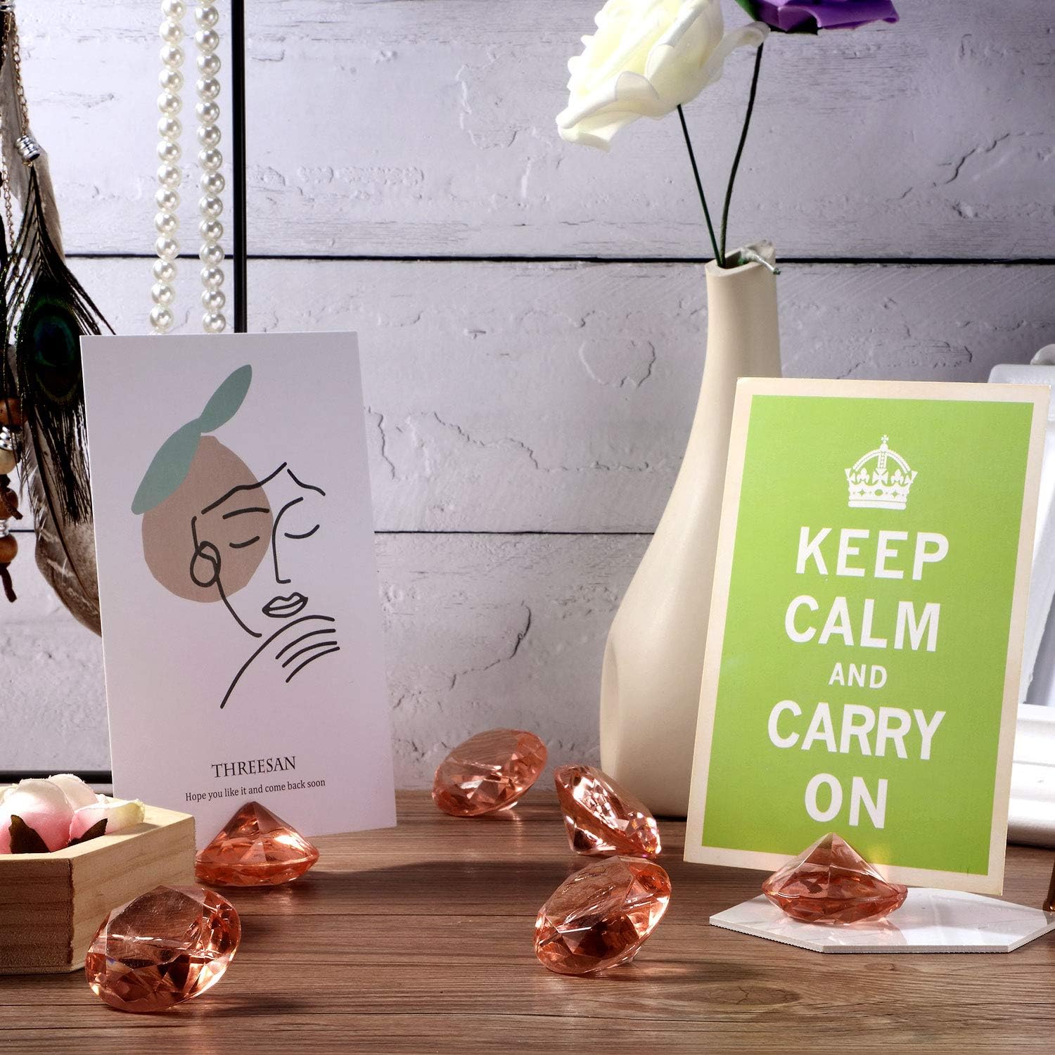 Boao 24 Pack Diamond Place Card Holders Acrylic Table Number Holder Card Stands Crystal Diamond Party Decorations Favor for Weddings Home Table(Rose Gold)