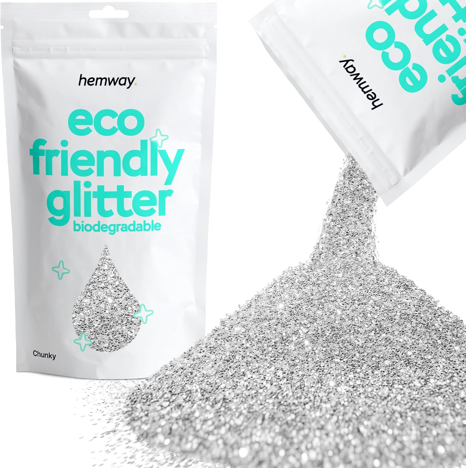 Hemway Biodegradable Glitter Eco Friendly - 100g/3.5oz Bio Cosmetic Safe Sparkle Vegan for Face Eyeshadow Body Hair Festival Makeup Craft - Chunky (1/40" 0.025" 0.6mm) - Silver