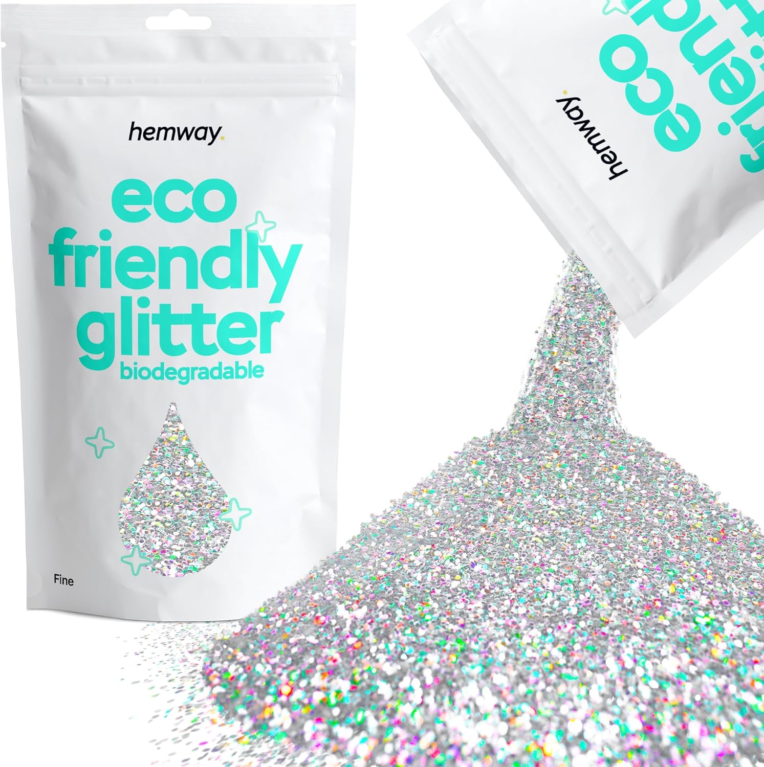 - All our Biodegradable Glitters are cosmetic grade non-toxic - safe for you as they are for the environment! Produced from eco-friendly film derived from sustainable natural resources, it's the same premium Hemway glitter but environmentally safe. Hemway Eco Friendly Biodegradable Glitter is the perfect way to add that extra sparkle without the carbon footprint.