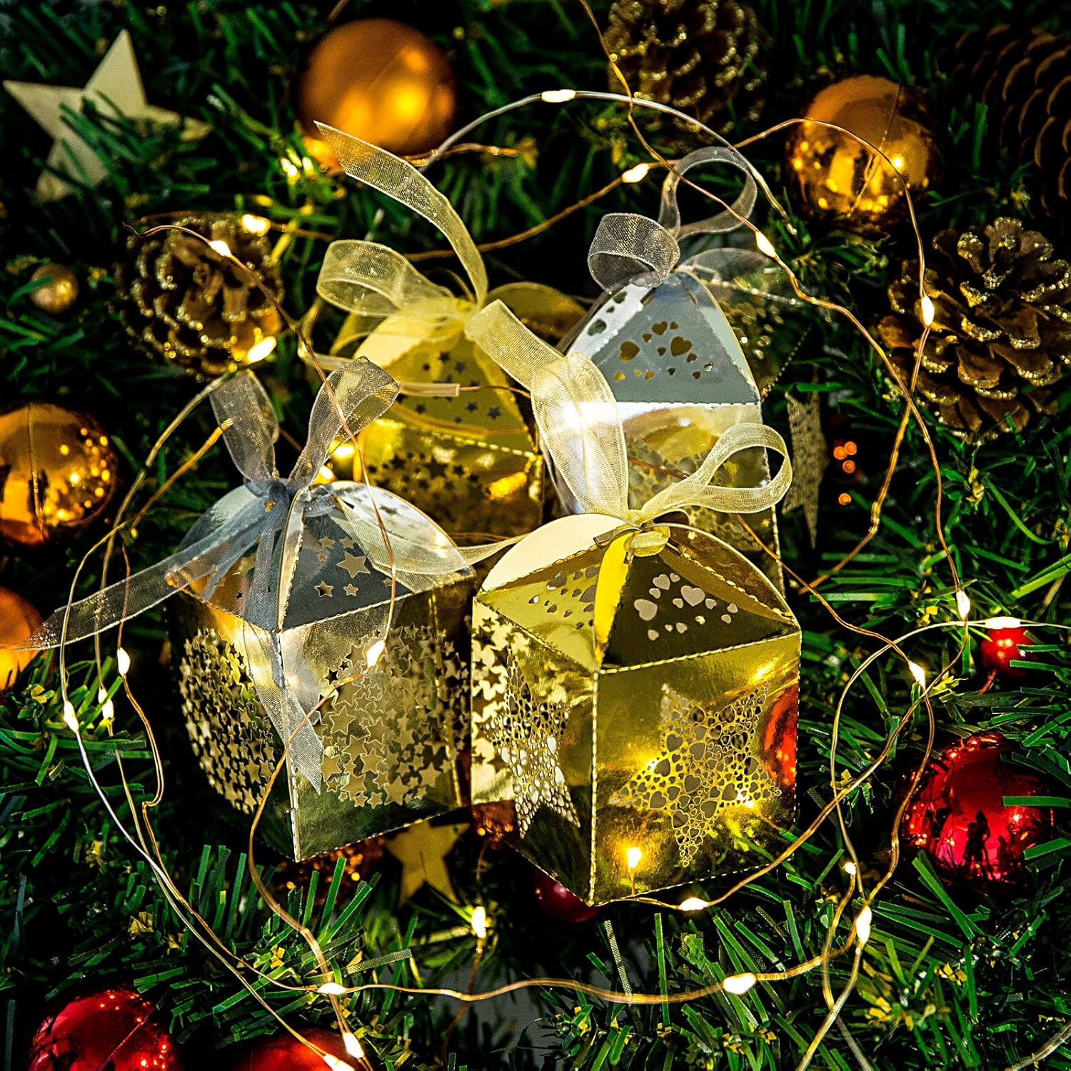 Naler 40pcs Mini Christmas Gift Boxes for Presents, Favor Boxes for Halloween Christmas Wedding Favor Party Gift Wrap Decoration, Gold & Silver, 2 x 2 x 3 Inches