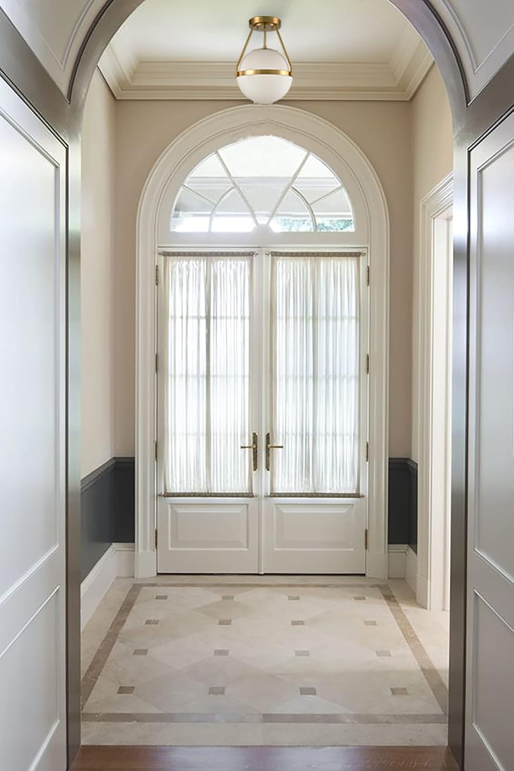 - π½πππ₯π¦π£π::A ceiling light fixture features a smooth spherical opal glass shade with a brass base that shines with a metallic luster, creating an elegantly modern yet clean look that gives you a fashion forward feel.
