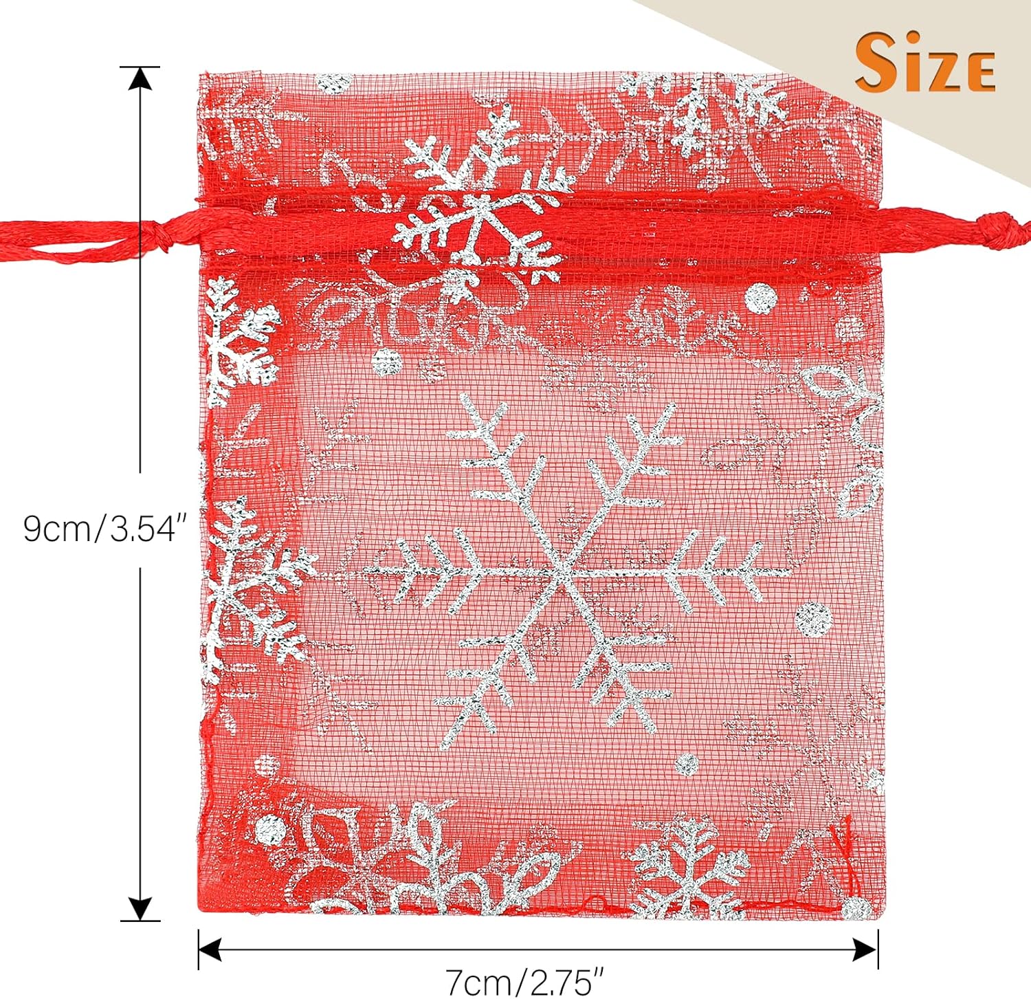 - 【Christmas Favors Bags】Sheer organza bags are printed with snowflake pattern, it is perfect to use this organza bags at Christmas, or any event, party in winter. In normal times you can also use these organza gift bags can elegantly wrap items such as wedding favors, soaps, rose petals, candles, perfume, beads and so on.